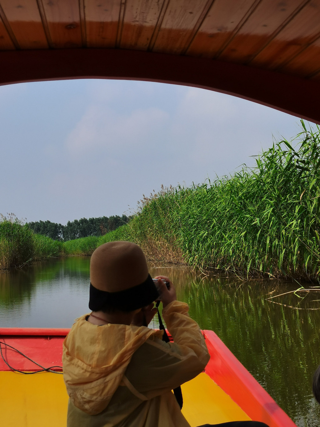 高邮湖芦苇荡湿地公园,有湖之秀,水之柔、苇之绿、景之奇,串起我们一天美好的高邮之行。这里虽是景区,但游客稀少,芦苇荡中就我们二十个人的团队两艘船在转悠。景区和我三年前来这里从外面看没有什么变化。为什么这样一个恬静、浪漫的栖息地却少有人关顾呢?想想60元的游船票加50元的芦苇荡迷宫的船票,在这里要花110的门票真是性价比很低。先说游船吧!其实就是湖心岛到岸边的摆渡船,如果不吃饭,不玩迷宫去岛上干嘛呢?就像几年前我自驾在堤坝路看看高邮湖更有宽广豪迈之感。这么有特点的地方,又紧邻有历史有特色的界首镇,如果调整一下经营思路这里会更好吧?期待再相遇时,这里更美。
