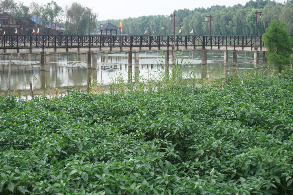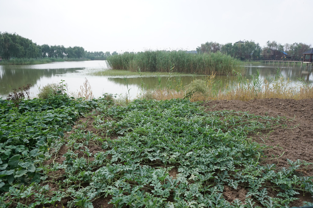 小径一侧是湖泊,一侧是垄地。这里的湖区种植着大量的荷藕、菱角、芡实、蒌蒿等水生植物。
