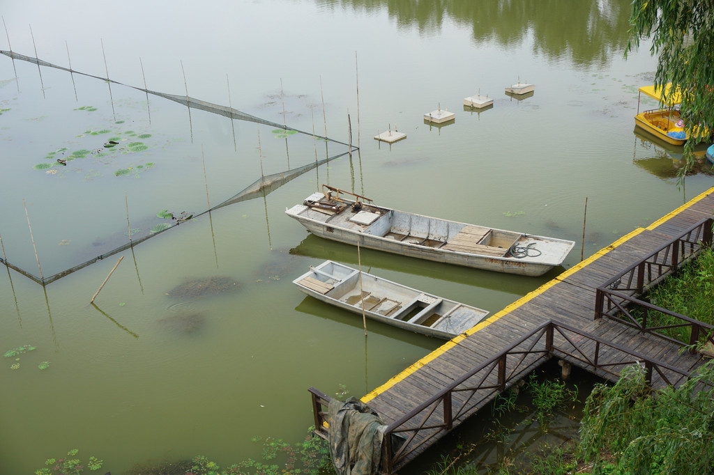 堤坝将湖面进行了分割,布置。一边堤坝上有各种养殖业的大棚,一处堤坝一侧一块块有序的种植着各种蔬菜。看到这样的画面我就知道这儿过着自给自足的富裕的生活。