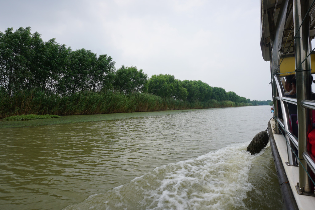 蓝天白云之下,船不紧不慢的行驶在河道中,会使你心旷神怡,完全沉醉在一片绿色的世界中。