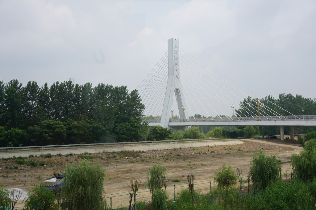 在S237省道上远远的就能看到这座白色双塔空间索面斜拉桥--界首运河大桥。大桥在蓝天,绿水之间显得如此清纯。大桥成一个“S”型起于S237,跨越京杭大运河,终点交于运河西堤。依桥来一个“S”型的旋转。