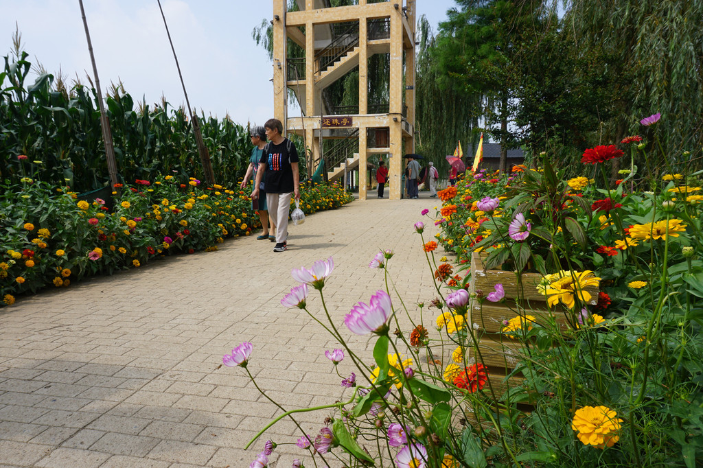 我们没有急于回到码头,而是前往下一个目的地——芦苇荡迷宫。在这样繁花似锦的道路上行走心情都是美美哒!