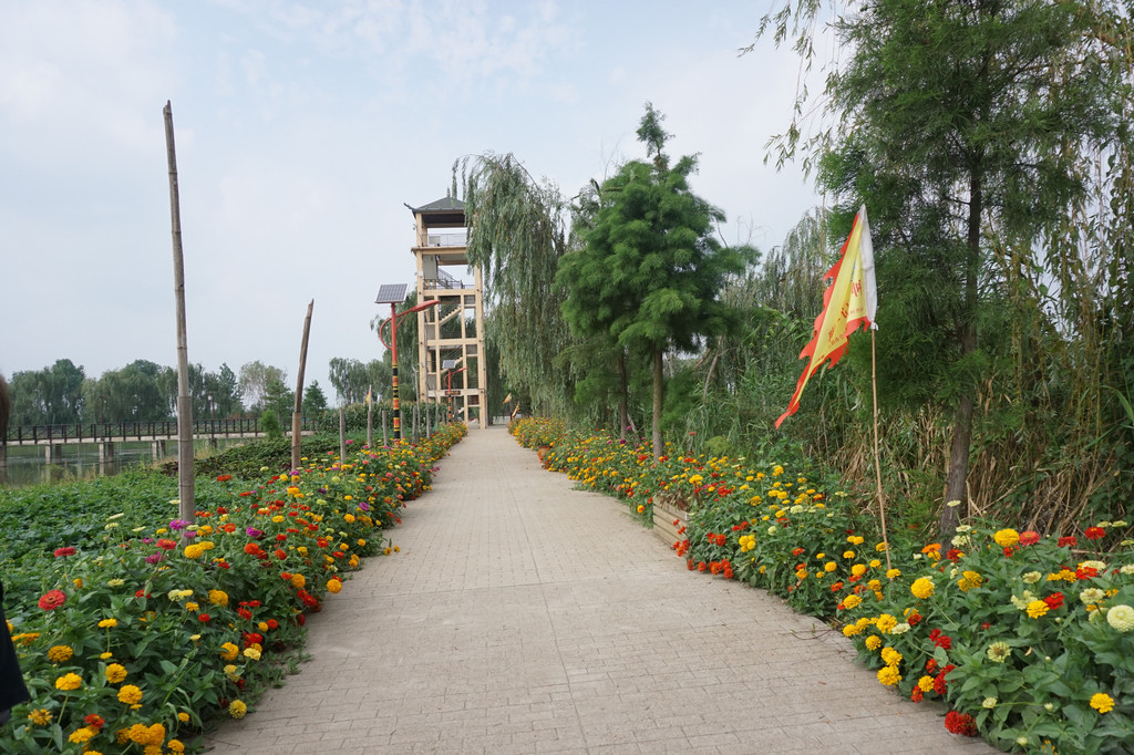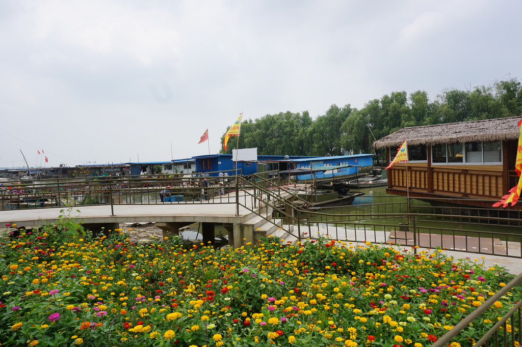 芦苇荡迷宫转悠了半小时,回到岸上,沿着花径回到码头座游船返回停车场。