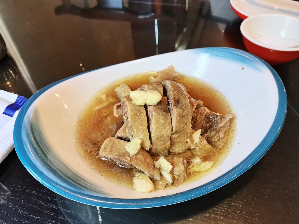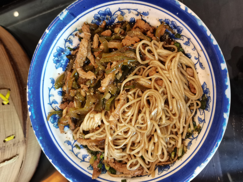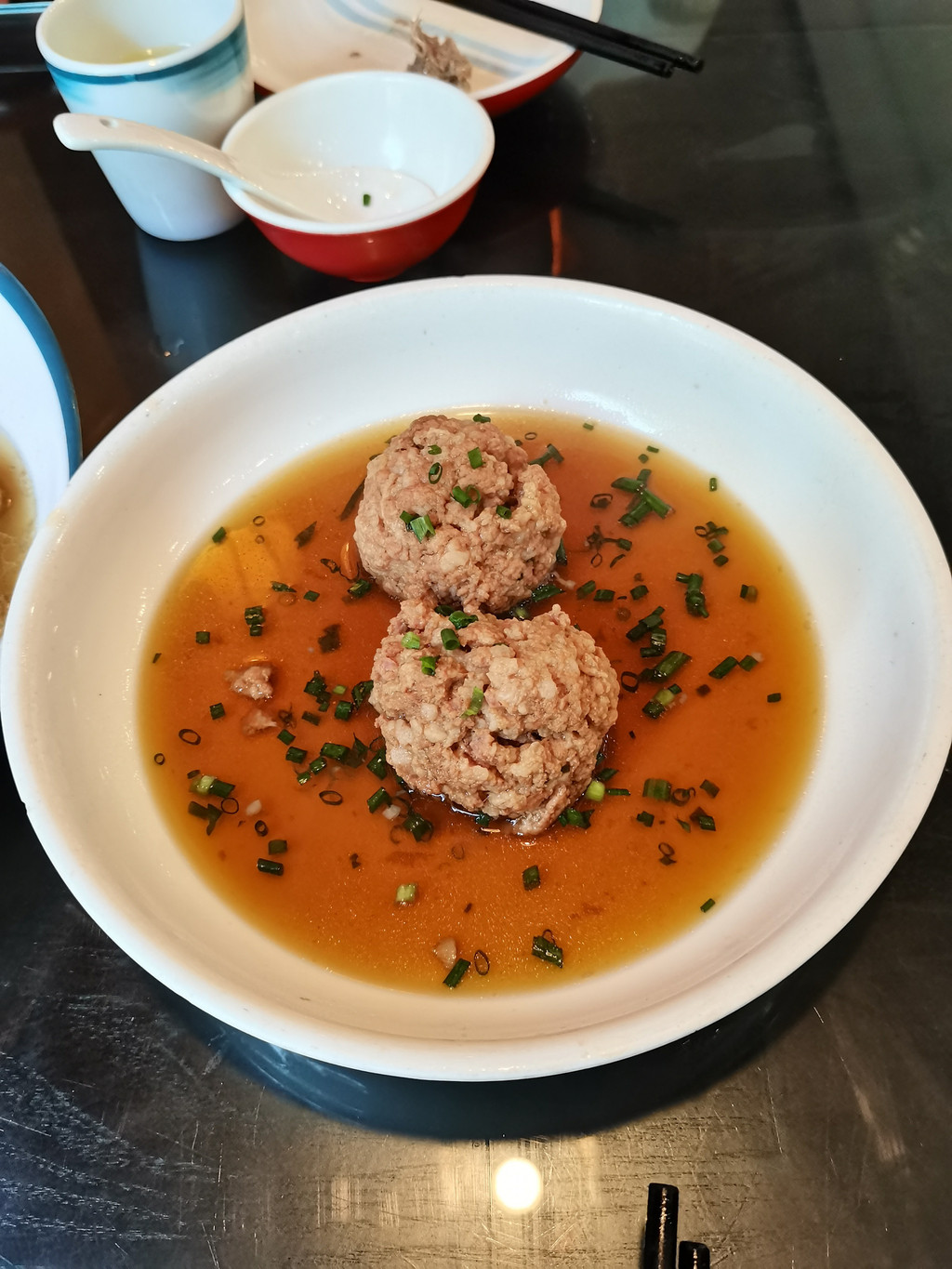 点了有名的周巷汪豆腐、老鹅、狮子头、蟹黄包、蒸饺、肉丝面。蟹黄包15元一只,包子之巨大超乎我想象,包子皮是我喜欢的发面,馅料中蟹黄和蟹肉含量不算少;蒸饺有我的手掌那么长,笋肉馅,比包子略甜一点儿;青椒肉丝面里放了大量的胡椒粉,有着胡椒特有的浓烈香味;盐水卤制的老鹅味道比较清淡,皮香肉厚;狮子头里放了不少松子仁,先油炸至外皮棕黄再清蒸至完全熟透,油而不腻,入口既化。