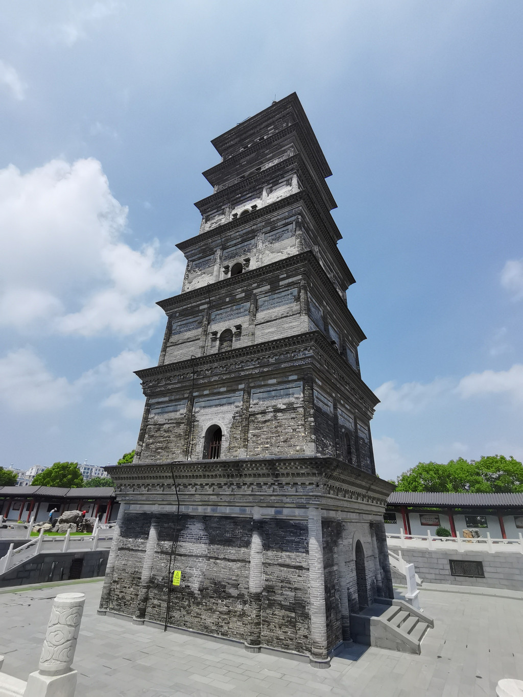 饭后,驱车去镇国寺。镇国寺与盂城驿虽然在直线距离上只有700米,但是由于镇国寺建在运河中心的小洲上,需要沿着运河往北经过高邮运河二桥才能到达,全程4.5公里左右。