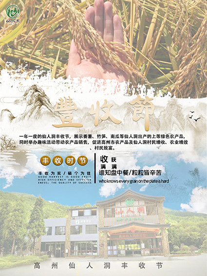 就在这个9月的下旬开始(9月23日至10月底),高州仙人洞景区举办丰收节活动!