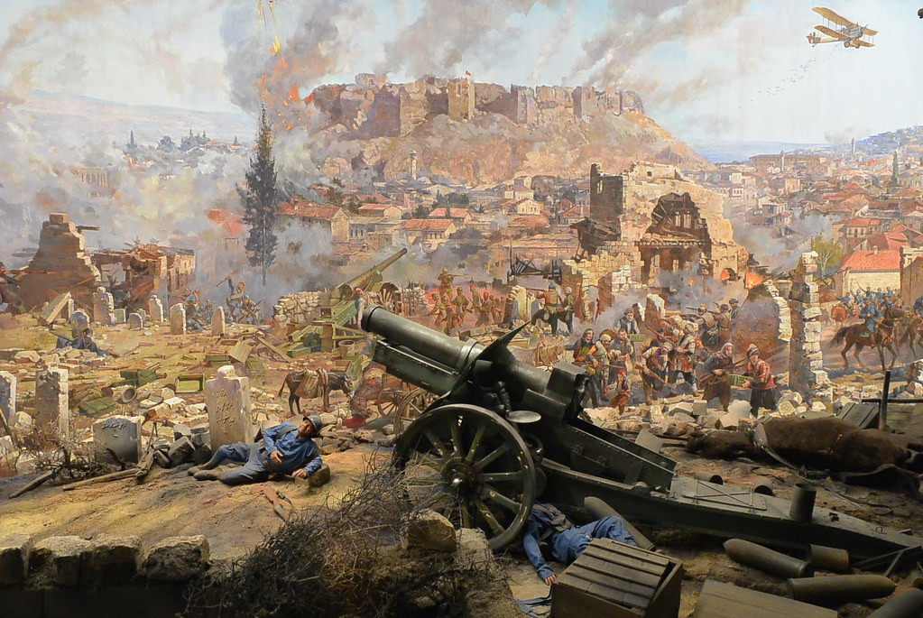 近代安泰普的故事,要从1918年第一次世界大战结束说起。奥斯曼土耳其帝国在战前统治着整个中东大部分地区,今天的阿拉伯半岛、巴勒斯坦、叙利亚、伊拉克都是奥斯曼帝国领地。在帝国鼎盛时期,它是一个在宗教和民族问题上相当宽容的大帝国,境内主要少数民族有斯拉夫人、罗马尼亚人、阿拉伯人、匈牙利人、希腊人、亚美尼亚人、库尔德人、犹太人,这些民族可以信奉自己的宗教,可以在族群内部实行自治管理。到了19世纪随着欧洲民族意识的觉醒,保加利亚、希腊、埃及、罗马尼亚等民族从奥斯曼帝国统治下逐个获得独立或者半独立地位,帝国内部经济资源枯竭,境内少数民族经常不忠于帝国朝廷,心向新近独立的自己的民族国家,所以民族和宗教矛盾越来越严重。朝廷对内统治力削弱,各个族群之间残杀冲突愈演愈烈,矛盾的最高点,就发展到一次大战期间,帝国政府出于对亚美尼亚人忠诚度的怀疑,在1915年前后对亚美尼亚进行的种族屠杀。1918年奥斯曼帝国战败,英国舰队占领首都伊斯坦布尔,但是协约国不想一下子推翻老大帝国的朝廷,他们的目标是瓜分奥斯曼帝国崩溃留下的遗产,比如沙特阿拉伯、伊拉克、约旦获得独立,由英国实际控制,法国获得叙利亚的托管权。帝国苏丹政府被协约国占领军留下来,好在瓜分帝国中东省份的时候有个谈判对象。整个帝国如果陷入彻底的无政府状态,也不符合英法利益,所以英法反倒是支持伊斯坦布尔残存的苏丹政府。从京城往东,整个帝国各族各派群龙无首,英法大块蚕食之外,希腊、南斯拉夫这些英法的小兄弟也趁机进占奥斯曼的领土,境内库尔德人、亚美尼亚人也各自拥有武装,跟土耳其自发组织的民兵打成一团。大家都想占地为王。经过半年多混乱,战时的英雄将军凯末尔借着苏丹政府派他去黑海沿岸弹压局势的机会从京城出走黑海沿岸,邀请各派开会组织国民大会,他打出的旗帜是土耳其民族主义,也就是说,不想要帝国时代占领的埃及、伊拉克、叙利亚等阿拉伯人的土地了,土耳其将不再是一个多民族的帝国,而是以安纳托利亚高原为核心,组建单纯由土耳其人构成的民族国家。当时战后乱局人心思定,需要一个强人出来收拾河山,凯末尔振臂一呼从者云集,支持他的都是土耳其人。其实英法列强主要目的是瓜分叙利亚、伊拉克这些帝国的外省,自身经过一次大战死伤惨重也无心卷入任何激烈的作战,所以并不特别反对建立土耳其单一民族国家。只有东南方向的阿达纳-安条克-安泰普-乌尔法-马尔丁这一线在土耳其本土和叙利亚之间,历史上并无明显分界线,自然地理又更接近叙利亚,所以占领叙利亚的法国认为,这些边境城市应该归属自己。所以一次大战结束的时候,安泰普的占领军是英国人,1919年英国转交给法军,土耳其居民不愿意让安泰普划归叙利亚,因此当地武装起义反法。这里同时还有大量亚美尼亚居民。战时亚美尼亚遭到奥斯曼土耳其人的种族屠杀,当然会组织自卫军站在法军一边,也是顺理成章的事情。不过从本质上讲,安泰普的战事可以算是奥斯曼帝国解体以后瓜分遗产的边界战争,对土耳其立国这件大事来说,算不上生死攸关。新的土耳其政府以安卡拉为中心,能威胁到国家存亡的最凶恶的敌人,是趁火打劫的希腊军队。希腊本就是奥斯曼帝国统治的死敌,一百年前从奥斯曼统治下获得独立,可是大部分希腊族人仍然在土耳其境内和当地人混居,所以希腊自认为有权争夺土耳其本土的绝大部分所有权。希腊军从安纳托利亚西部沿海登陆,直逼北部的革命首都安卡拉,这才是土耳其建国的生死之战。英法列强在感情上和物质上站在希腊一边,但如果希腊失败,土耳其建国,也无损于英法在中东的核心利益。以上是安泰普英雄之战的宏大历史背景。