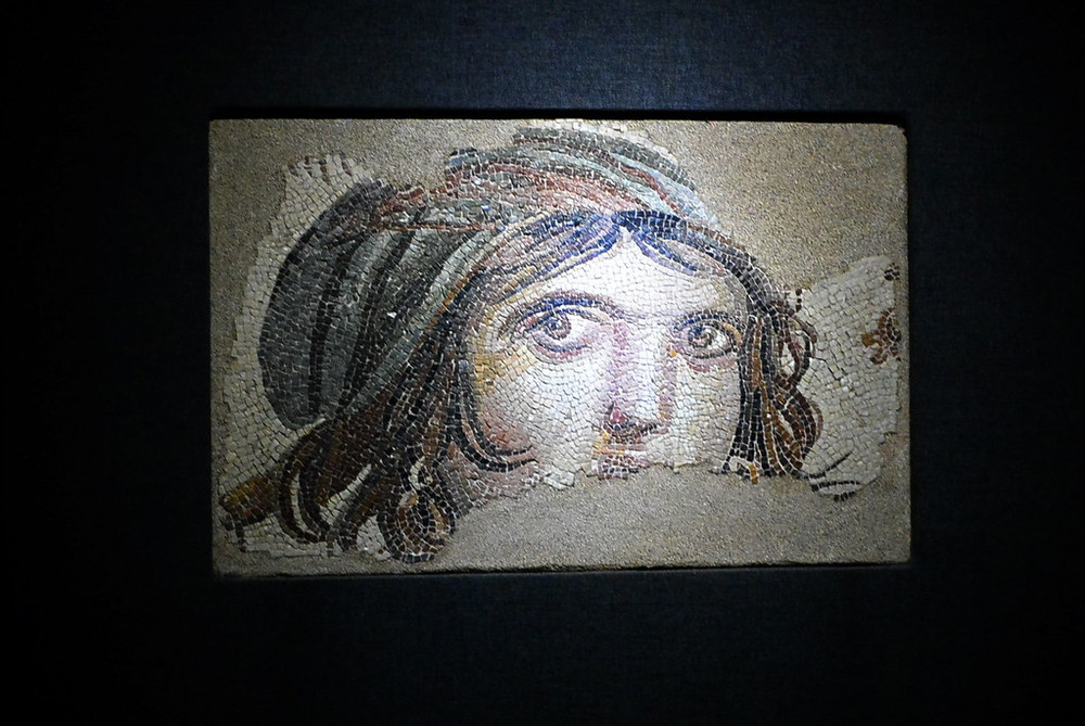 笔者在去年的《盛夏在肥沃新月地带的北缘》一文中曾介绍过安条克考古博物馆,加济安泰普的这座泽乌玛博物馆,是从原先的加济安泰普考古博物馆分出来,专门展示罗马马赛克拼贴画的全新博物馆,它的镇馆之宝是一幅《吉普赛女孩》面部肖像,专门开辟一间全暗的展厅,唯一的灯光打在这幅马赛克画上,画幅其实不大,女孩的面部表情似笑非笑极为生动,一双大眼睛会跟着观察者的角度转动,堪称罗马时代的蒙娜丽莎。