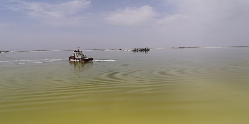 采盐船在湖里忙碌