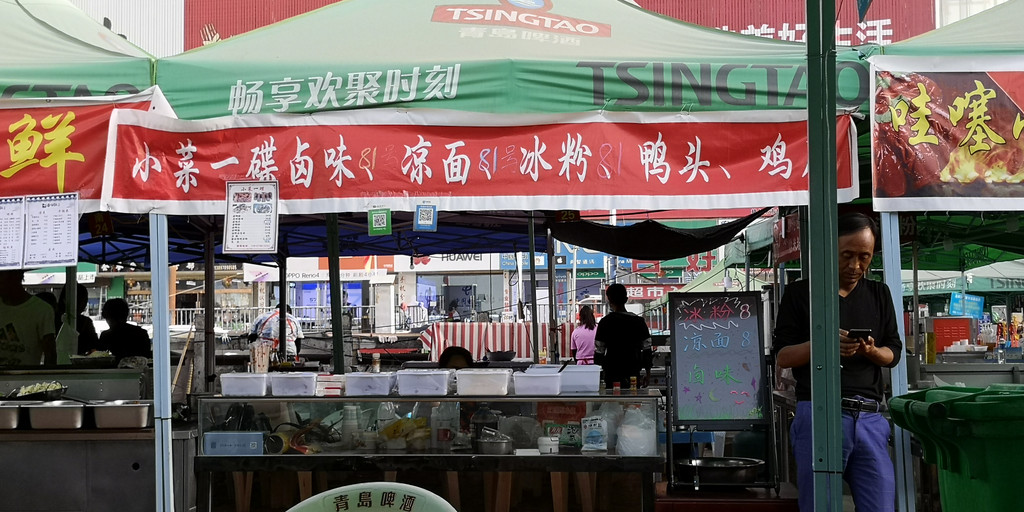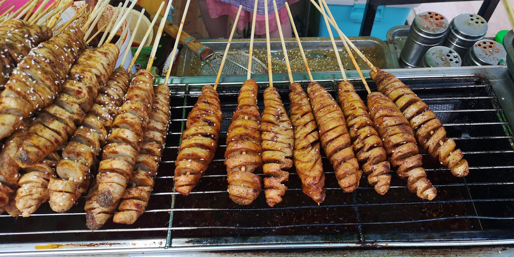 收拾一番后,又开始出门寻找美食。当地老乡说有个步行街,吃喝玩乐都有,于是我们坐出租车直达。一看就象内地的夜市,除了卖一些大众的衣服和廉价的饰品,没有什么特色。不过美食露天广场吸引了我们,南来北往的美食都有,管理很规范,每个摆位和每张桌子都有编号,你到摊位前点餐后,告诉摊主你的桌号,摊主们会把加工好的食物送到你的桌上来。我们重点吃了北方的食物,总体说来味道不错,完全能够接受。