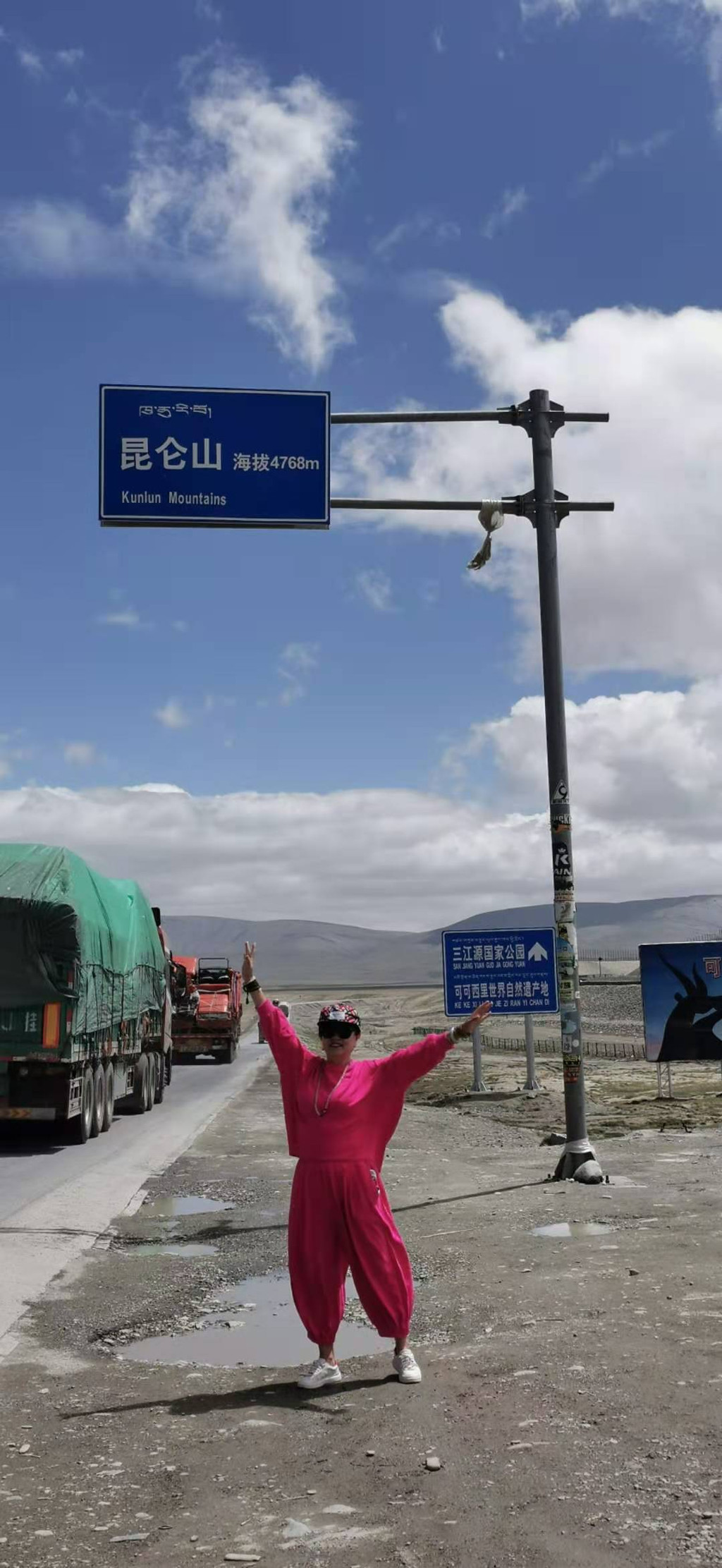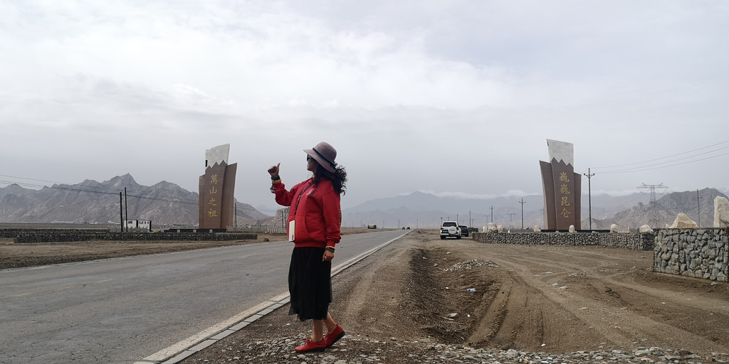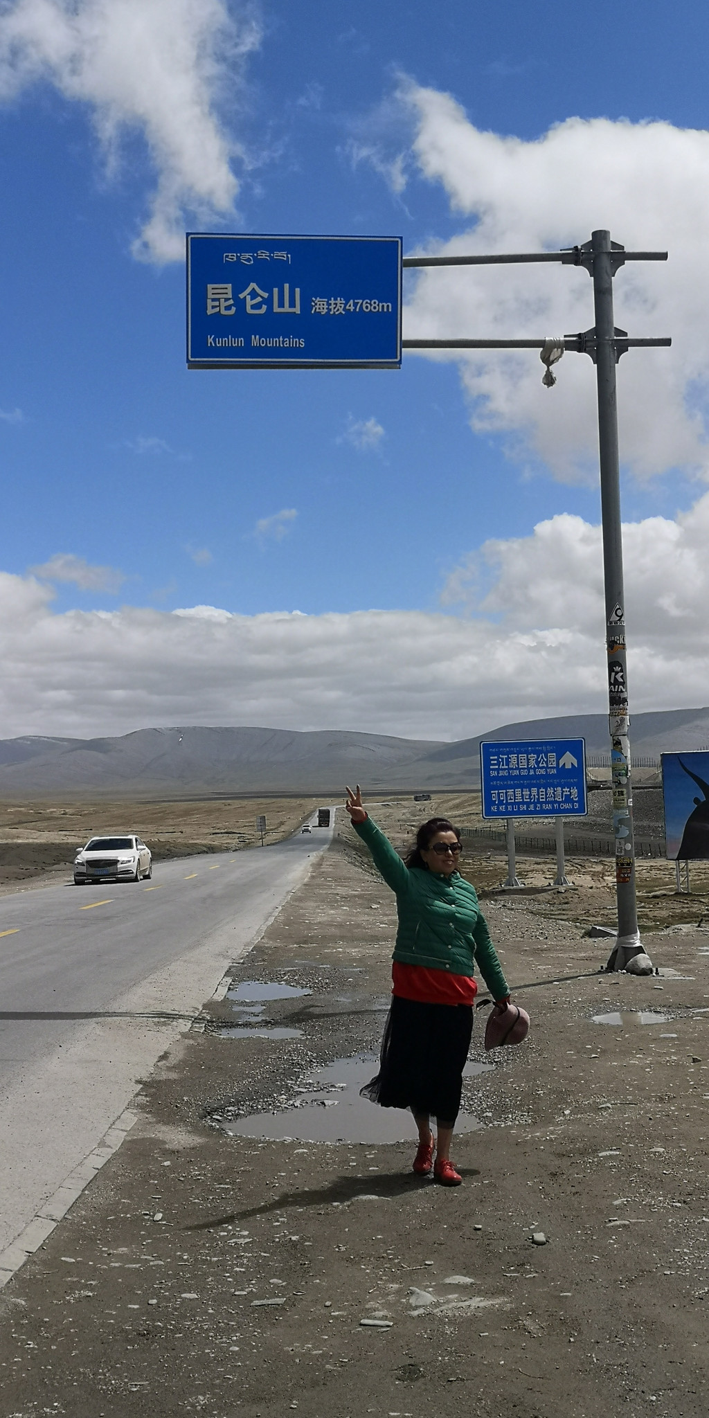 在荒芜的山间穿行,终于看到前面的路牌昆仑山口,海拔4768米。