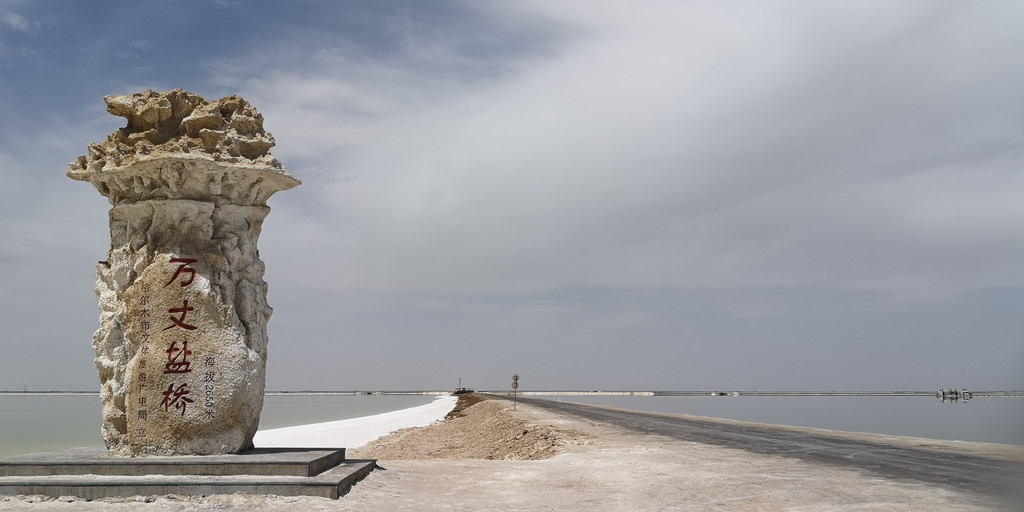 察尔汗盐湖有5856平方公里,为了方便采盐、晒盐,工人们在湖里面用盐结晶垒起了阡陌纵横的盐田埂,又叫万丈盐桥。如果桥面出现坑洼不平,只需要往坑洼处浇上几瓢盐水,烈日照晒下,水份蒸发后,留下结晶盐,路面就平整了。