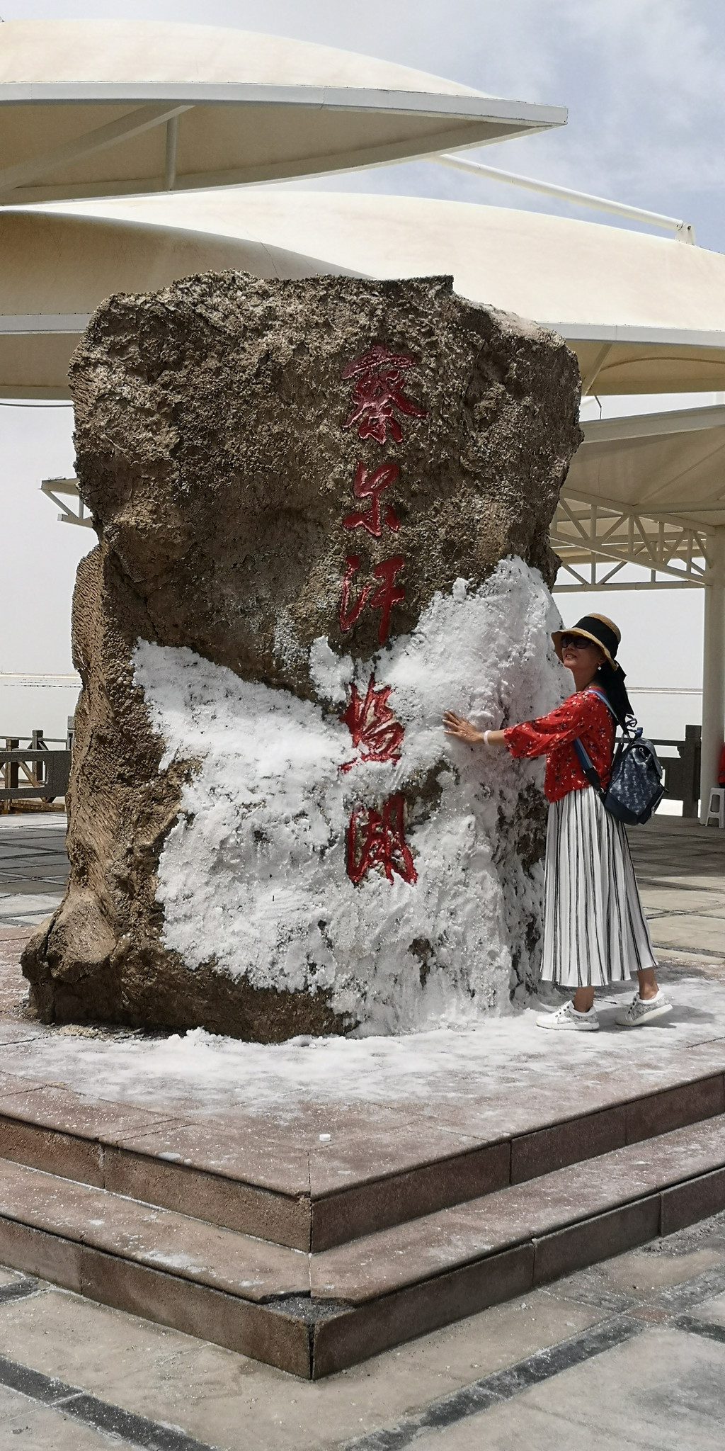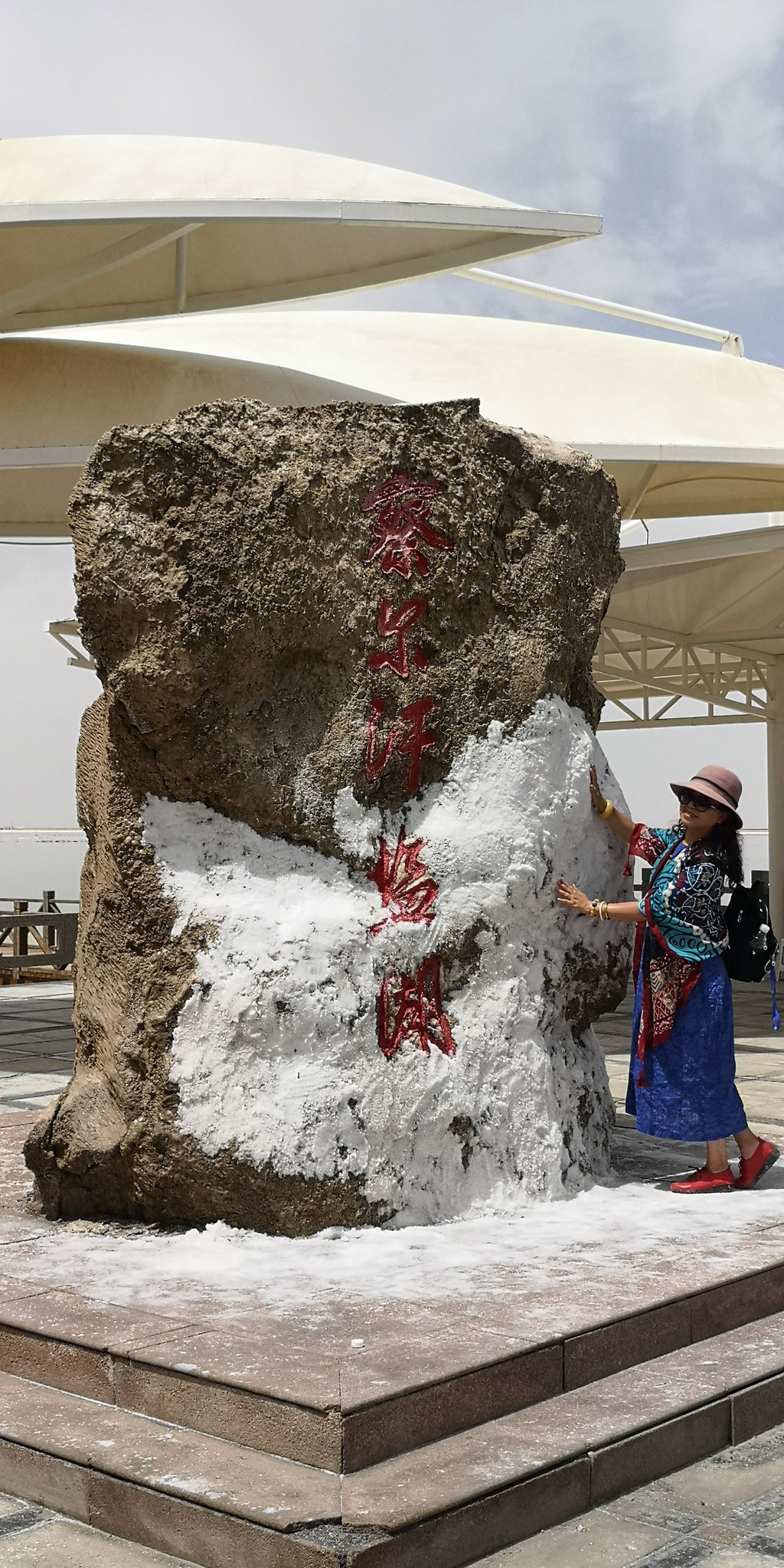 进入察尔汗景区的标志,一块巨大的盐结晶石