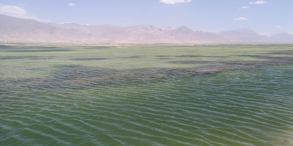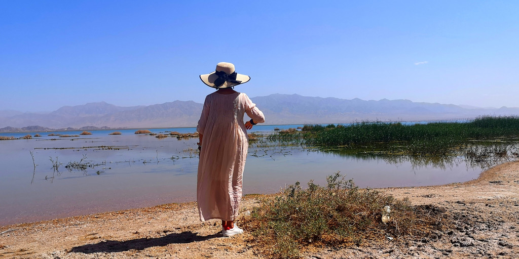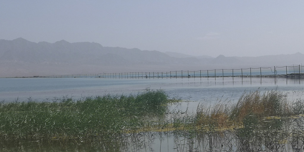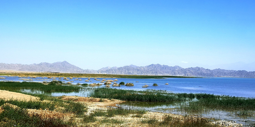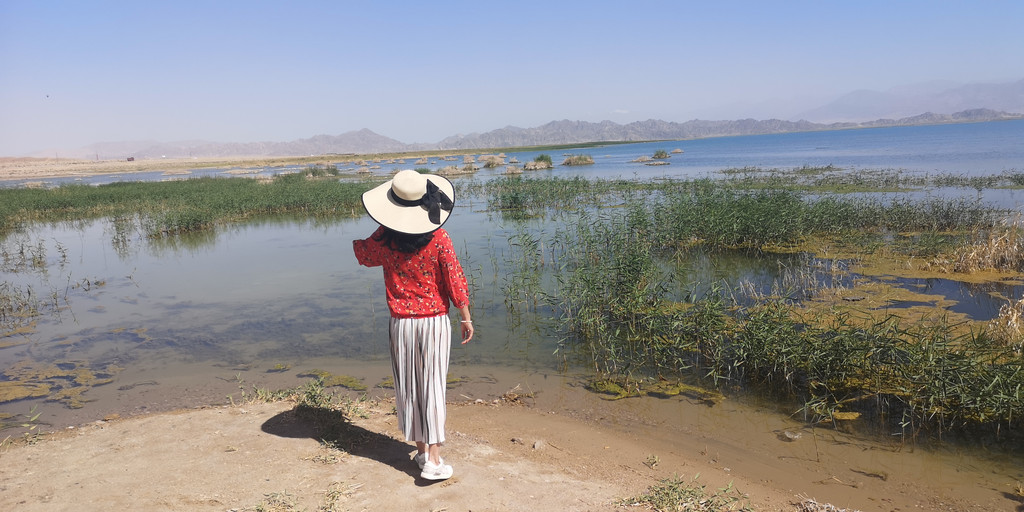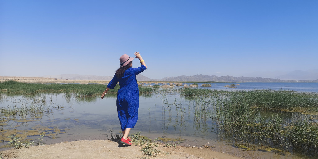 一早我们来到小柴旦湖,这湖完全是原生态的,通往湖边连象样的路都没有。汽车停在老远的地方,我们顶着烈日步行过去。近处一看,可以看出这是淡水湖,因为有许多的水草和类似芦苇一样的植物。或许是一路过来看的湖多了,或许是审美疲劳,这湖没有让我们有更多的兴奋,我们在岸边拍了几张照片就离开了。