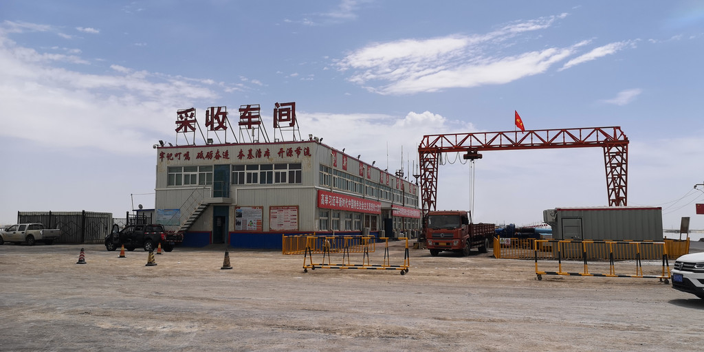 这里有巨大的察尔汗盐化工厂。工厂外专门设有游客中心。所有车辆必须停在指定停车场,换乘工厂专门的旅游客车进入。车上讲解小姐姐对察尔汗盐湖作了简要介绍。