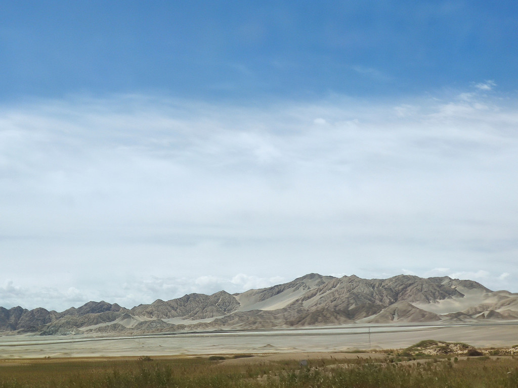 ,疾驰在通往格尔木的高速公路上,时速180码简直不要太轻松。道路两旁电线杆形状犹如猫咪,有的似羚羊,一排连着一排,在认真的站岗放哨,连绵几十公里,甚是壮观,可惜由于车速太快,根本没办法拍摄下来。八月的西北,昆仑山上未见积雪