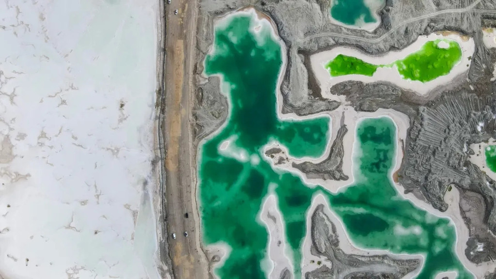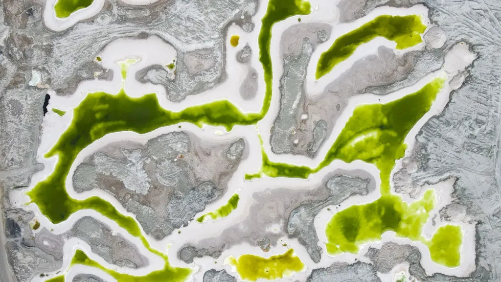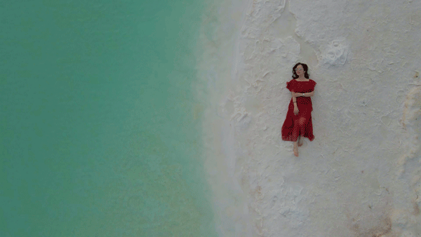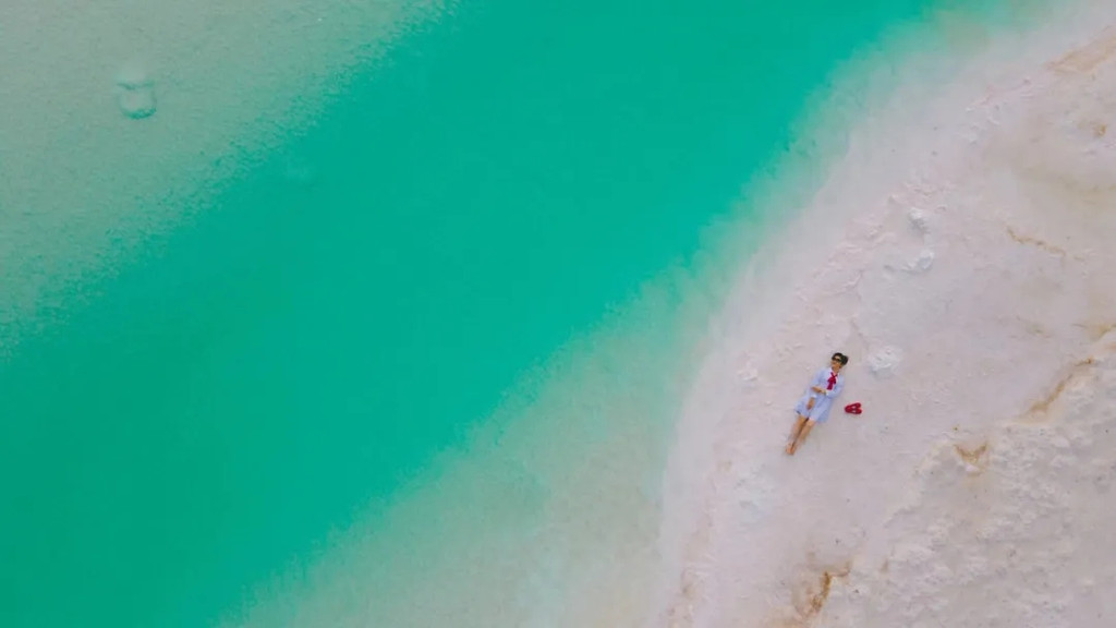 这里的湖水呈现出蒂芙尼蓝,而湖边覆盖着的白色结晶,虚无缥缈的像一处仙境。