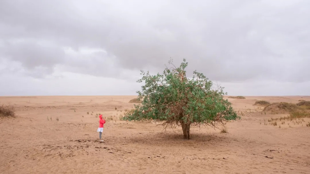 看吧,够不够绿,听说下雨天的沙漠和绿色的胡杨林更配哟。