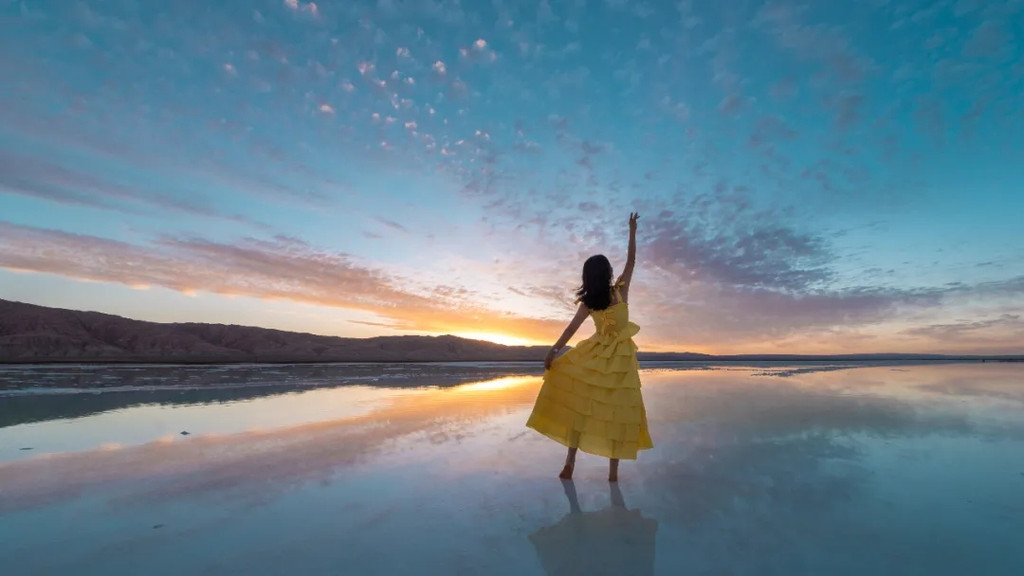 手捧一把盐,殊不知将整个青海的夏天捧在手里,好好享受这一刻的美好,因为察尔汗盐湖更像是上帝留在人间复制美好世界的镜子。