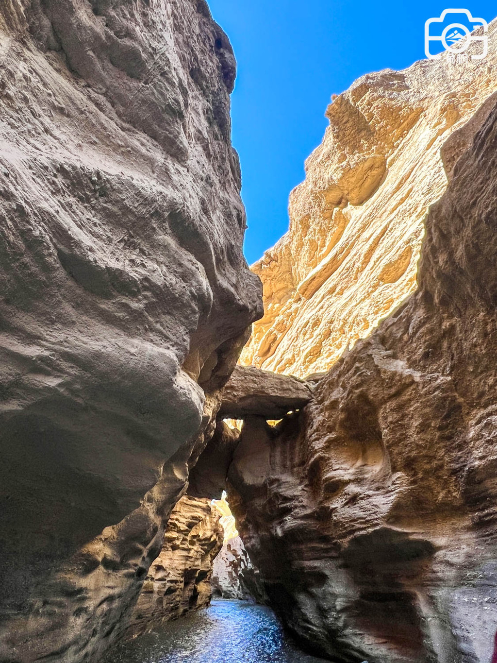 我们沿着大峡谷往里走,真的可以用移步换景来形容,有的地方宽约数米,有的地方则只有两三米,抬头向上,如同一线天一般。如此景观,是亿万年雪山融水冲蚀雕刻而出的年轮,造型奇特,震撼人心。 当我们升起无人机,从空中峡谷,如同大地的裂痕一般,狭窄、险峻、崎岖。