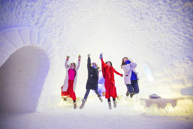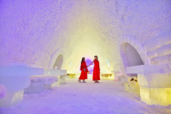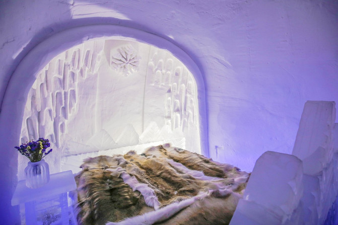 这座雪堡酒店,不仅仅是可以观赏,而且是真的可以入住的。酒店会给住客提供的羽绒睡袋是足可以抵御零下30摄氏度极低温度的狠角色,虽然在雪堡酒店里不可以使用取暖电器,大家也可以放宽心,在雪堡酒店里会激动得睡不着,但一定不会冻得睡不着的!