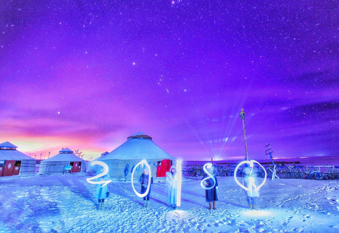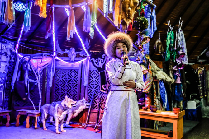 夜至“ 蒙古 人游牧部落”,晚上的气温已经低至零下36度,但是草原人的热情不减, 蒙古 族小哥哥和小姐姐已在 蒙古 包前恭候我们已久,为我们举行了具有民族特色的“下马酒”仪式。据说,“下马酒”是 蒙古 族的招宾酒,是成吉思汗时代流传下来的古来迎宾仪式。