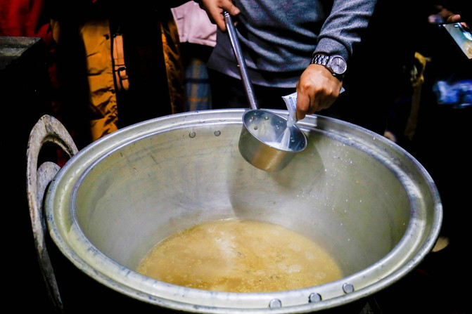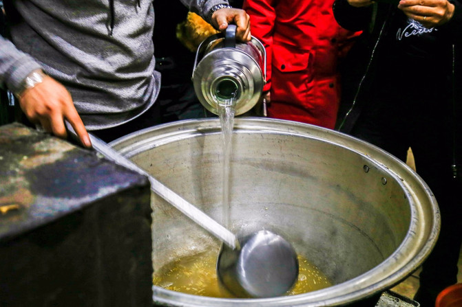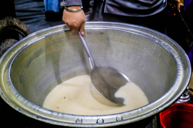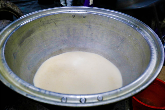 在锅内放入一小勺酥油、一把炒米炒香,再加入之前烧开的水,之后向烧开的水中放上适量的砖包,茶水烧开后向装有茶水的锅中放入牛奶,继续烧开后关火。这样,奶香四溢的奶茶就做好了,喜欢甜味的可以加入糖,钟意咸味的就加入盐。