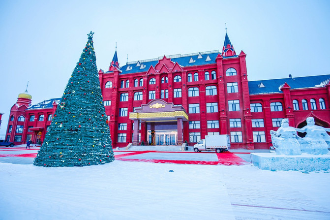 我们要入住的中科丽丽娅庄园位于 内蒙古 自治区 呼伦贝尔额尔古纳 市,庄园已是自成一派的观光点。主体漆红的庄园加上 东欧 建筑特色的尖顶,乍一看还以为走进了 俄罗斯 红场的建筑群。走进庄园,首先就会被金碧辉煌的大厅所吸引,晶亮唯美的水晶灯映照着墙上描金的花纹和复古油画,整个前厅的装潢都让人感觉置身文艺复兴时期的俄国礼堂。