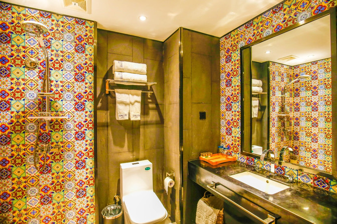 根河 蓝莓小镇主题酒店是一家以欧美工业风与生态相结合的酒店,布置完善细致、风格典雅别致、环境舒适。整体风格非常的小清新,一开房门就被房内清新的布置给吸引了,酒店卫生间用五彩的瓷砖贴饰很别具一格,牙刷是木制的,非常的特别。