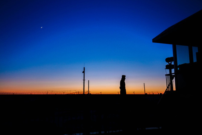 暮色下的国门,边防战士寂寥的身影,旁边是中俄铁路,对面是邻国 俄罗斯 ,这些环境更显边防战士的寂寥,但是更让我们这些祖国的人民对他们更心存敬畏。
