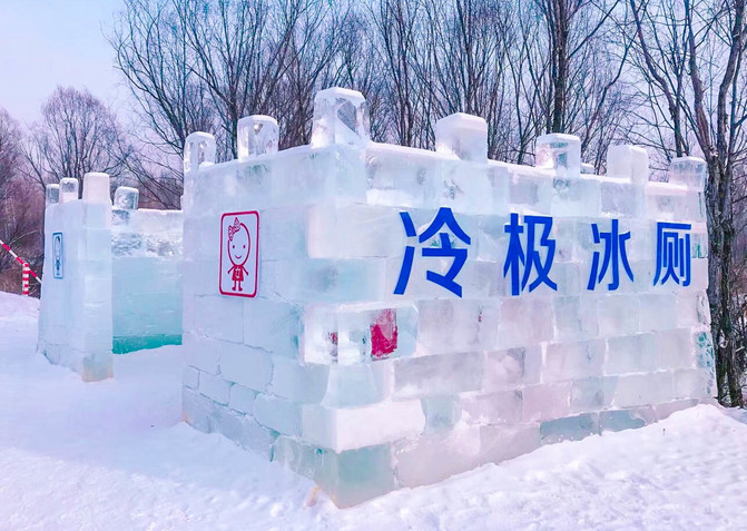 大草原真的很广阔,从一个景点到另一个景点,有时相距的车程都得2-3小时,上洗手间的问题,就只能沿路看看有没有旱厕,然而在 根河 ,居然有纯冰的旱厕。有朋友戏说,大冬天在这上洗手间都得带根棍,不然解决完事情后,没法脱身。