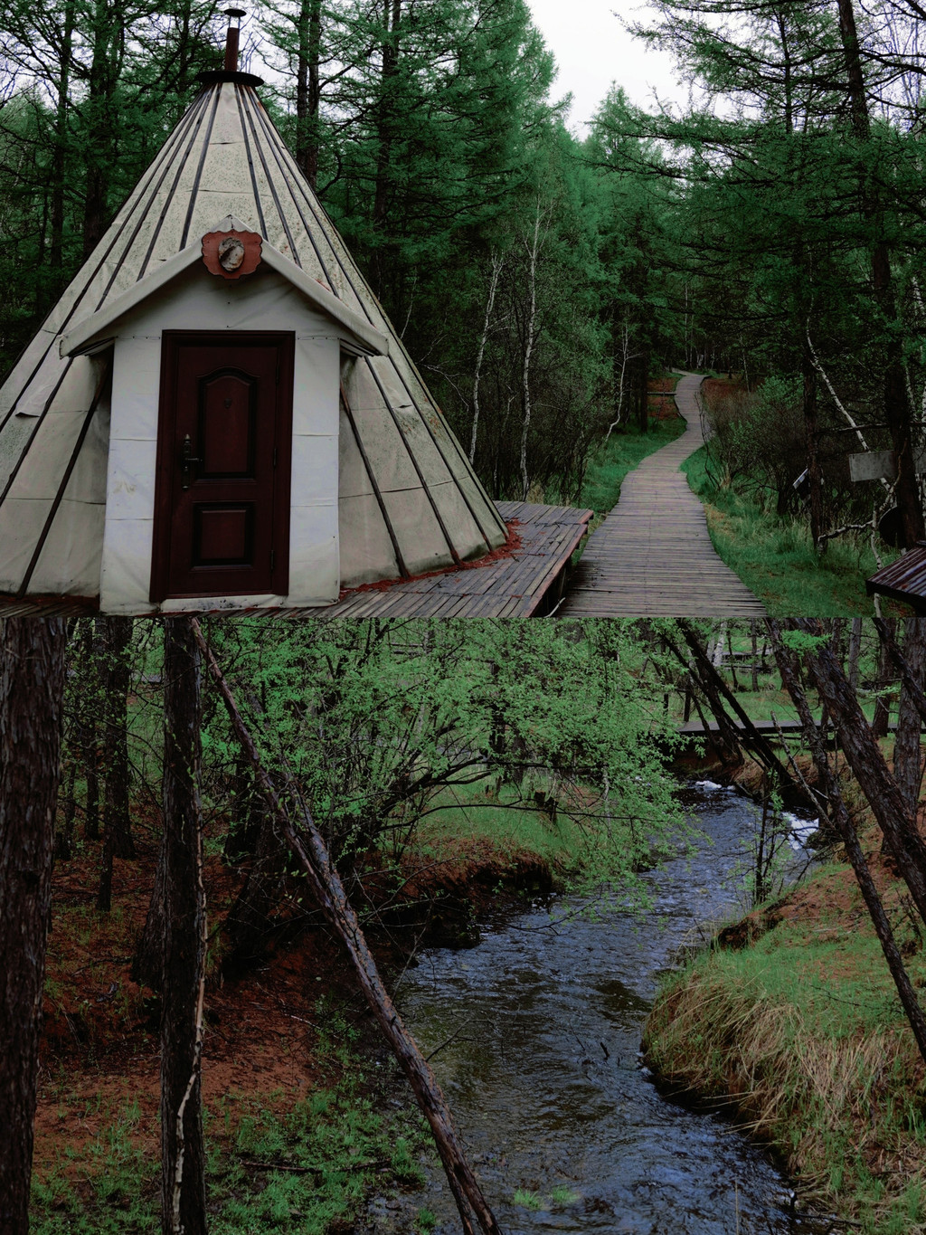这次不惜代价铁了心去敖鲁古雅驯鹿苑,是被它原始的自然感震撼。看过《指环王》的朋友们都应该记得精灵族生活的绝美森林场景——雾气暂未散开的清晨,一缕阳光打到林地和慵懒躺着的驯鹿身上,仿佛随时闪现几只顶着圣洁光环的精灵。敖鲁古雅将部落风情和天然生态保留到极致,给外人展现出最惊艳的自然景观,还原电影画面,让人身临其境。