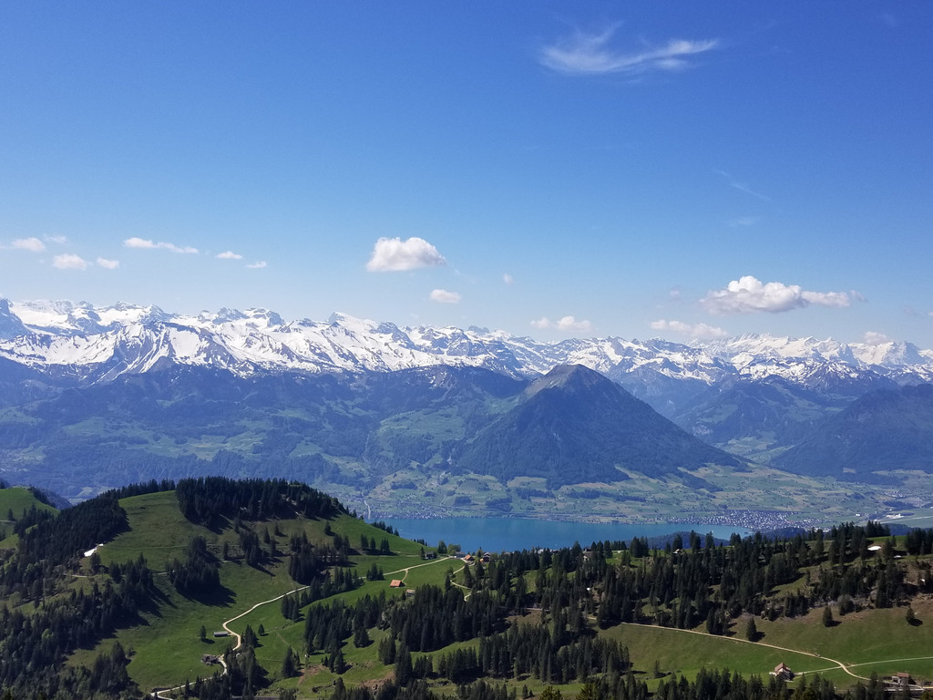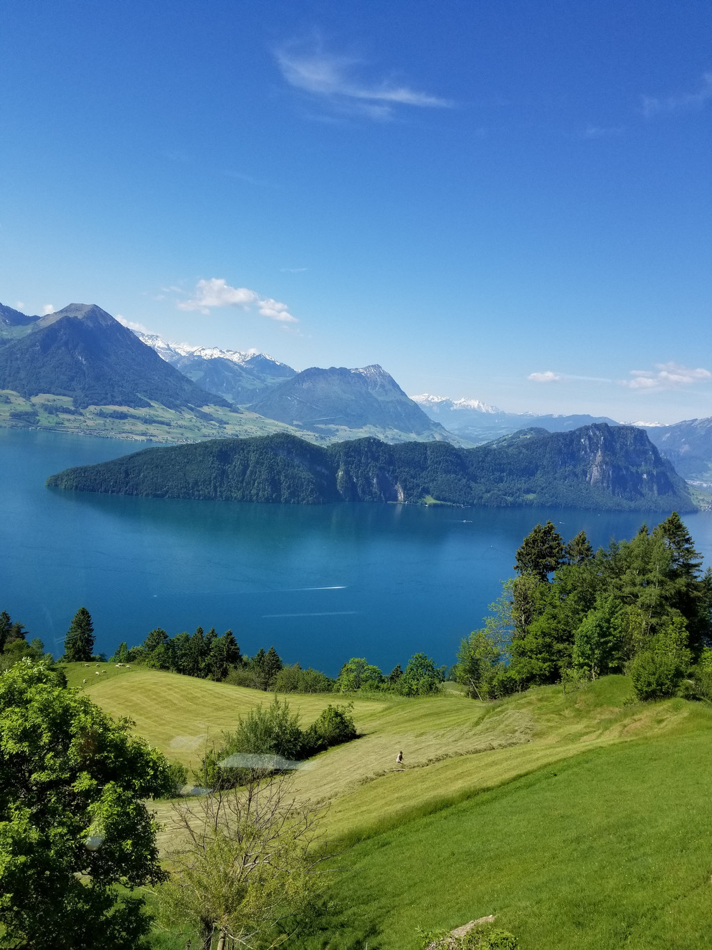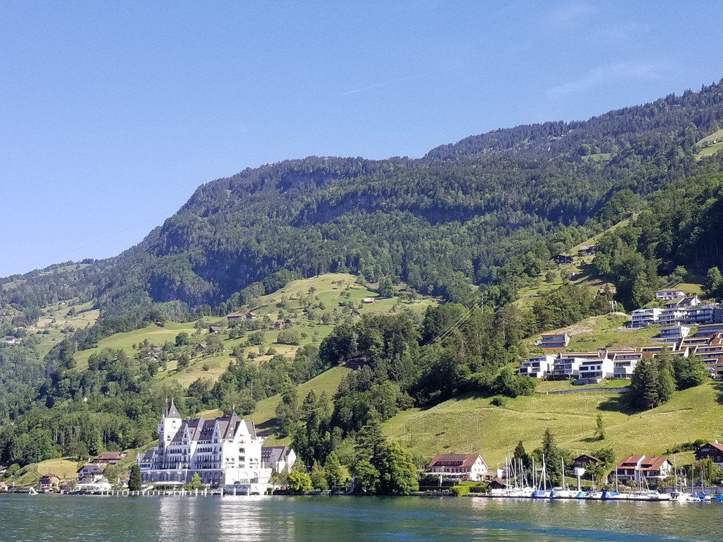 做攻略计划时受时间限制没有把卢塞恩作为重点,如果将来有机会一定要单独再来一次瑞士,每个地方三五天,深度悠闲地享受瑞士的绝美。第二天早上从卢塞恩乘坐游船50分钟左右到达小镇VITZHAU,再乘坐登山小火车一路爬升到瑞吉山的山顶,一定要坐在火车的左边,这样才不会错过窗外的湖光山色,下山时坐缆车索道到达Weggis童话小镇,小镇有多美?拍出来的照片也就是实景的百分之一,强烈建议朋友们务必要在此住上几日。