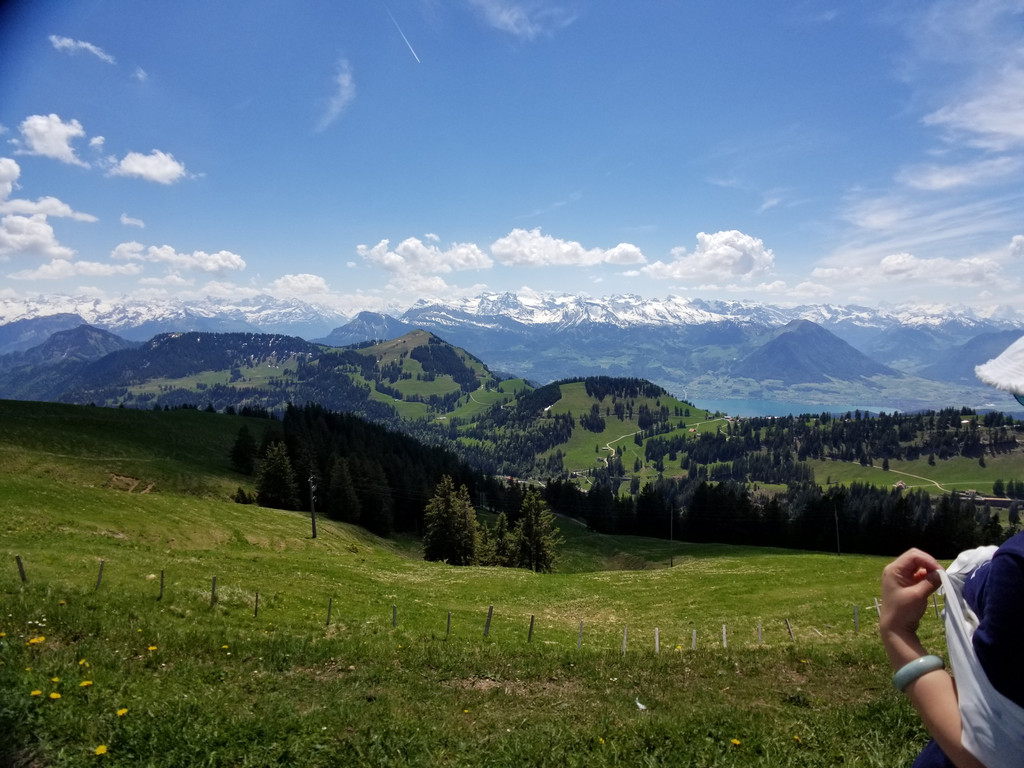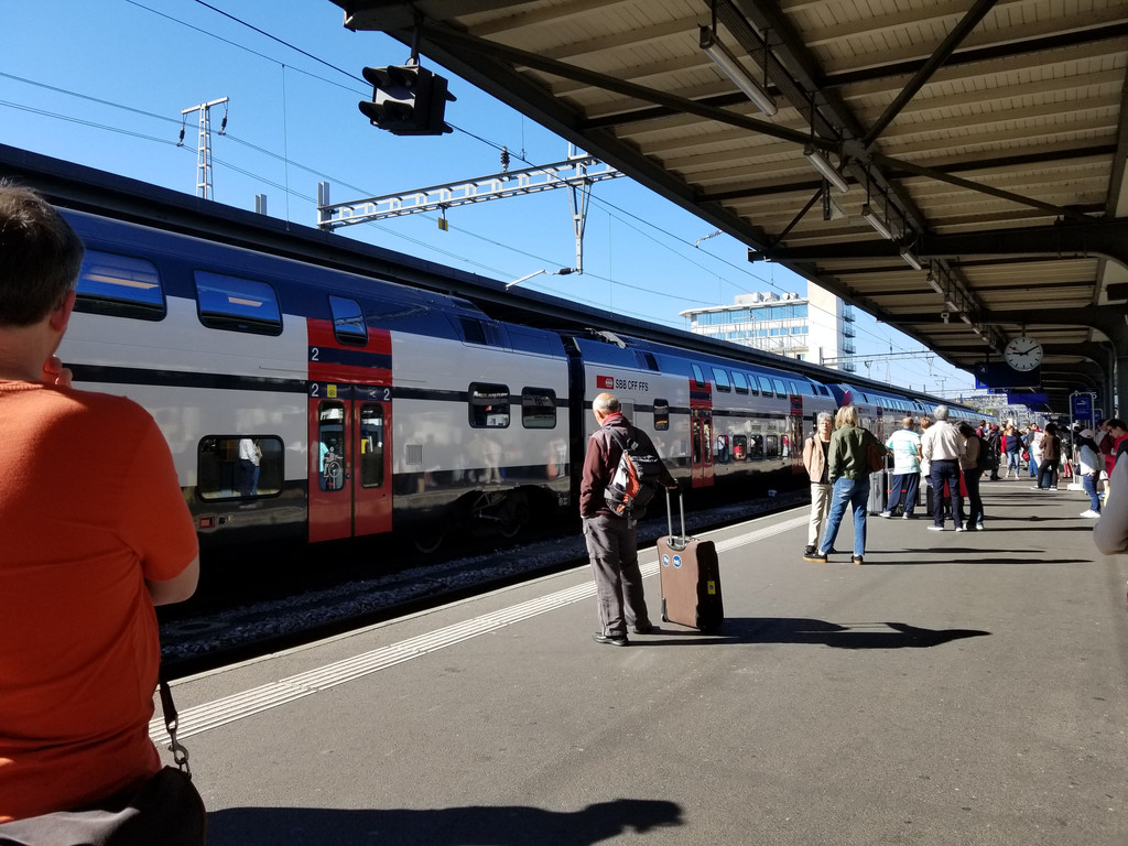 按照行程计划必须要离开采尔马特这迷人的小镇前往下一个目的地卢塞恩了,说到这儿,特别建议日后来旅行的朋友们最好按照3-4天安排,这次我们的时间太赶了辜负了这冰川之城,度假、滑雪都是极好的。火车到卢塞恩需要4个小时中间要换乘2次,其中一次换乘间隔只有6分钟,开始还挺担心赶不上下一趟车,实际上欧洲人口少,不像国内火车站乌泱乌泱的人,事先查好了站台腿脚利索点,就像地铁换乘一样快捷换乘,而且是先上车再检票。女儿负责整个行程的交通信息,是非常能干的好旅伴!在通票上填好了相关车站的信息,列车员不紧不慢一边溜达一边和乘客们聊几句,在我们通票上打个孔,完事。这次亲身感受下来,包括之前从巴黎到布鲁塞尔,在欧洲境内铁路网络极度发达,转乘很普遍但却是出人意料的方便快捷。我们买的是二等座的通票,车厢里都很干净,最重要的是很安静!