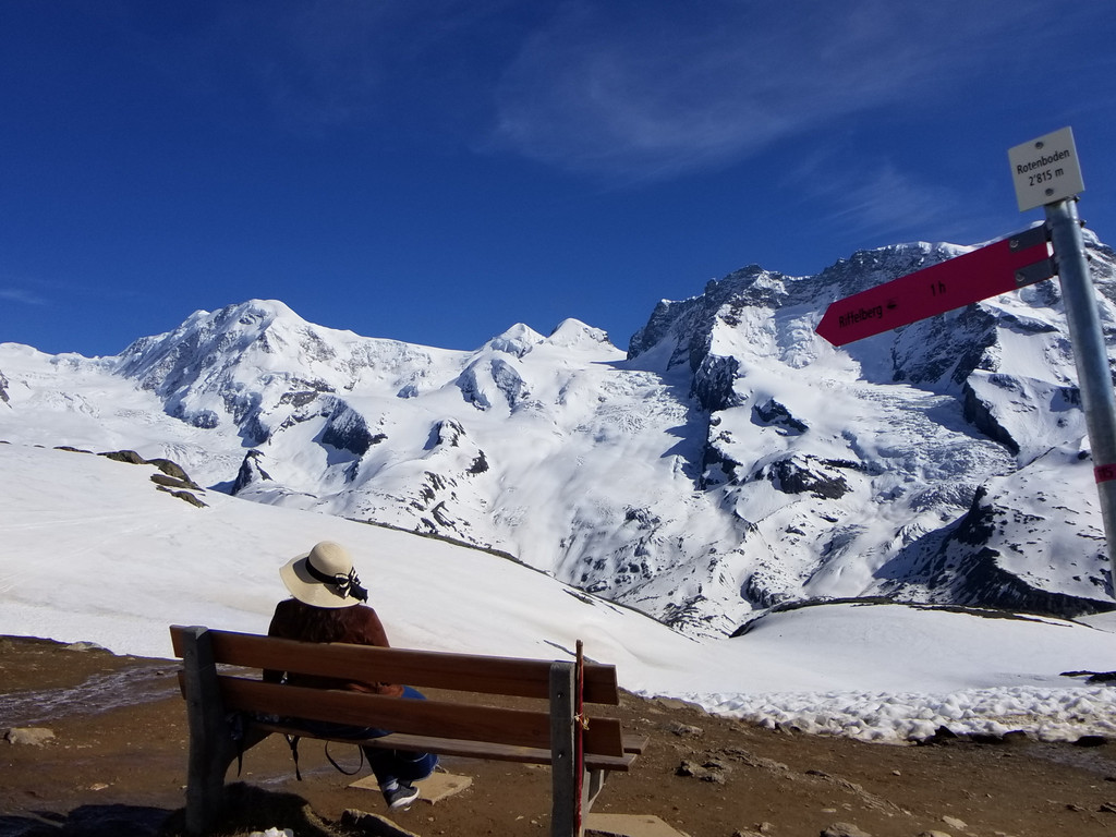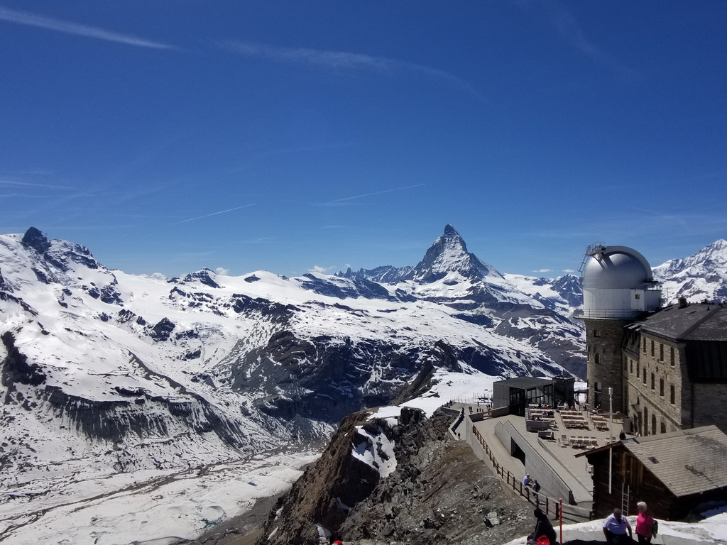 在满车厢游客的不断惊叹中,瑞士引以为傲的象征——马特洪峰就在眼前!在这一站下车的游客只有十几个人,群山环抱中四面寂静没有人说话,都被这眼前的景象震撼到难以言表。