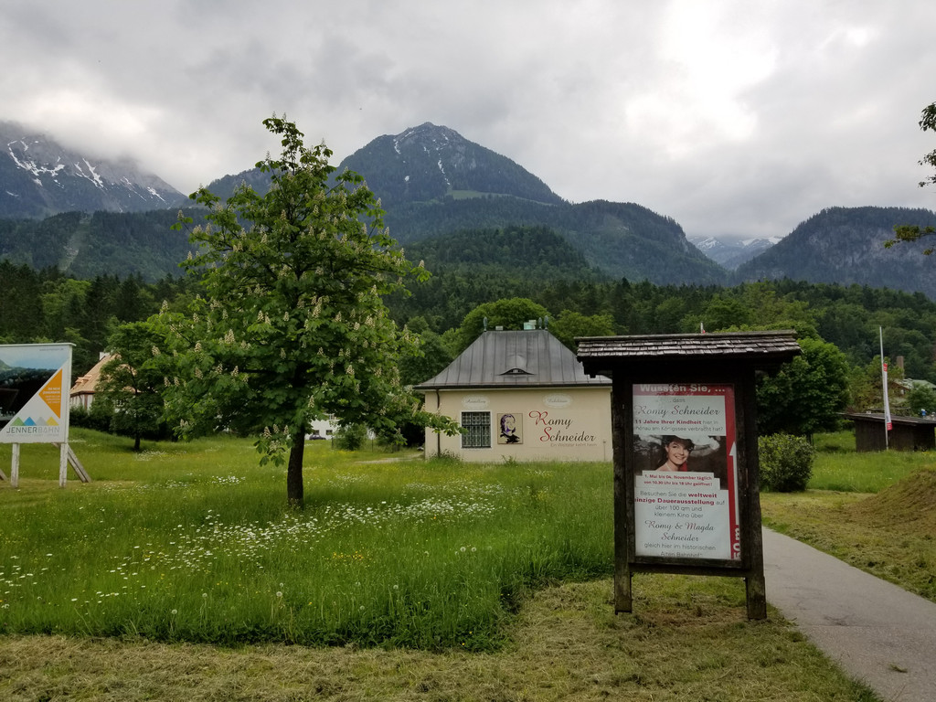 流连醉心于山水草木之间,时间在催促我们必须要离开了,国王湖周边有一座耶拿峰可以乘缆车上山一览国王湖,还有希特勒的鹰巢可以参观,这次都没法安排在我们的行程里,遗憾。往停车场的路上有各式小店,景区里没有任何商业实施,我们出门背了两瓶水坚持了五个小时。路边看到一个房子,是关于罗密施耐德的小型展览,我们赶时间来不及去看了,茜茜公主的电影看了无数次,这次行程让女儿非常不爽的是没能去奥地利,不过在开车回慕尼黑途中进入了奥地利境内与萨尔茨堡擦身而过,也算是个彩蛋吧。