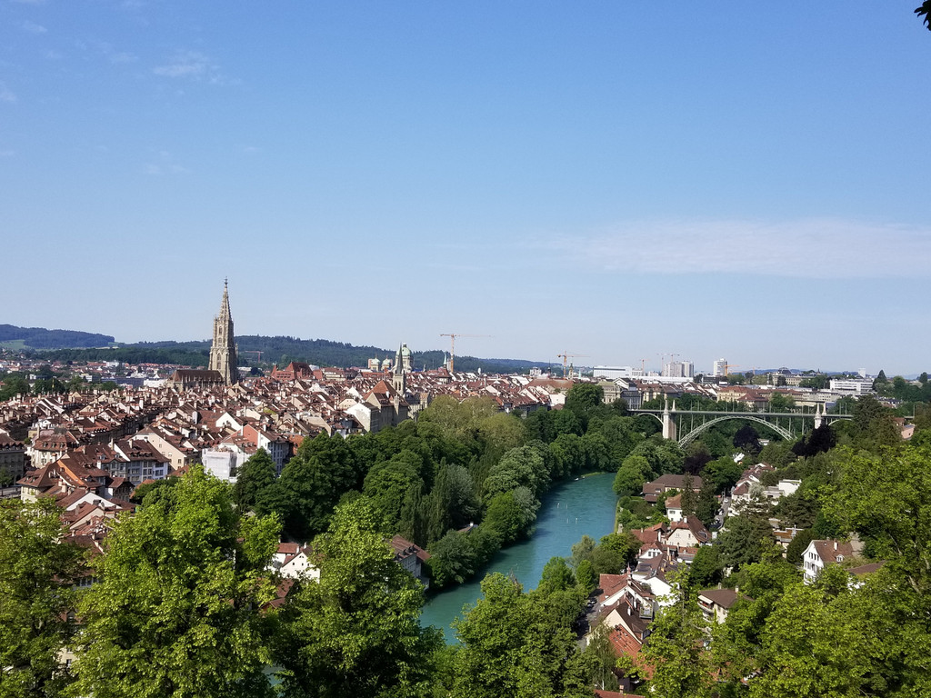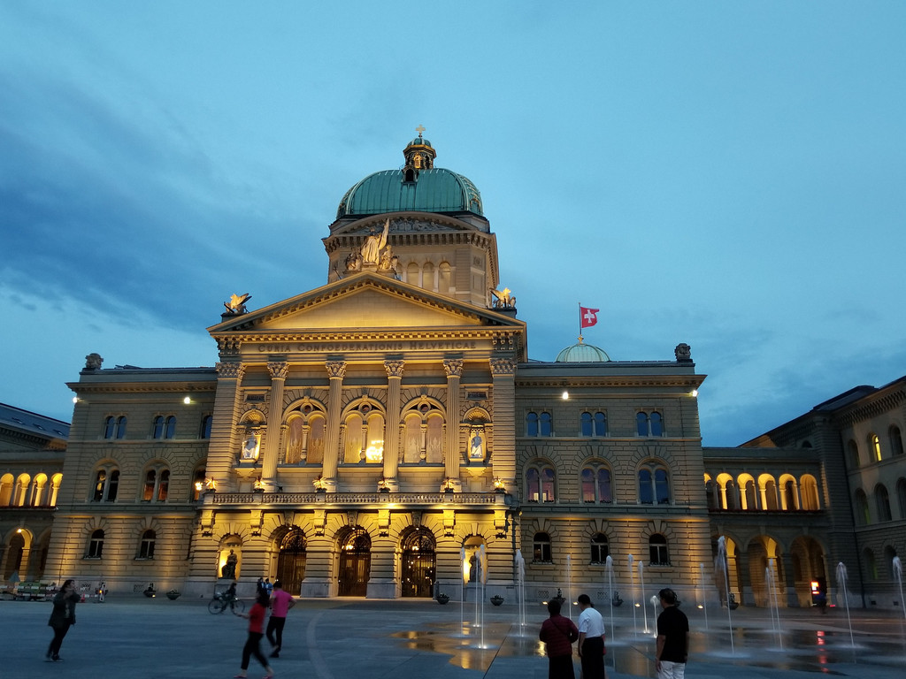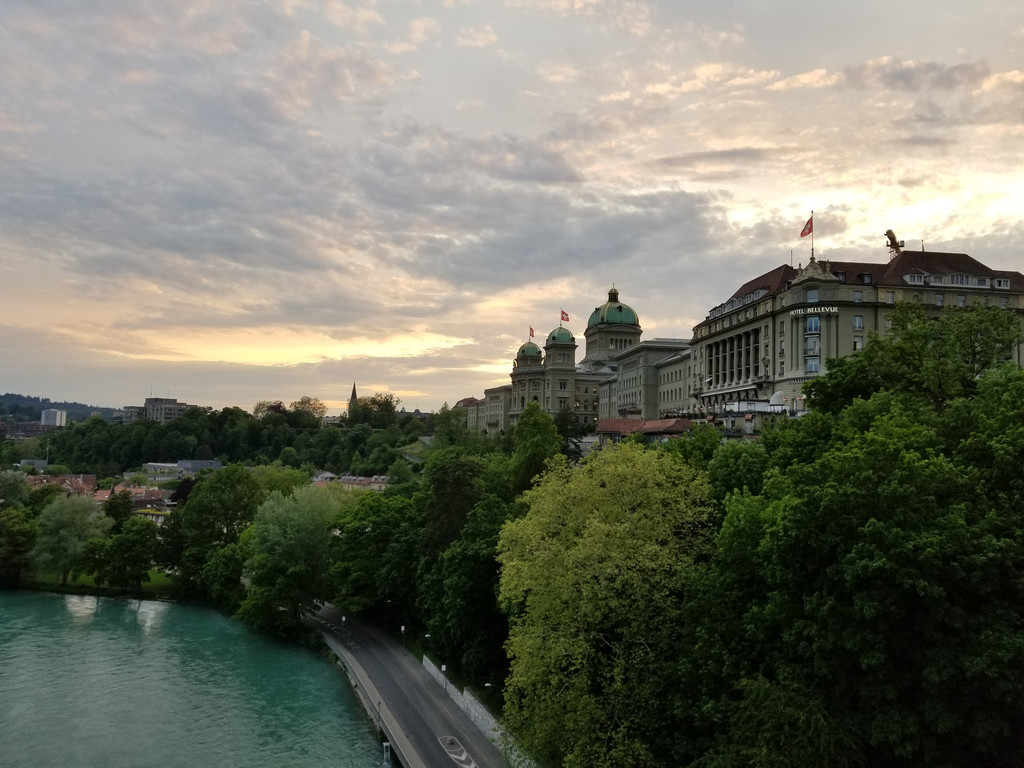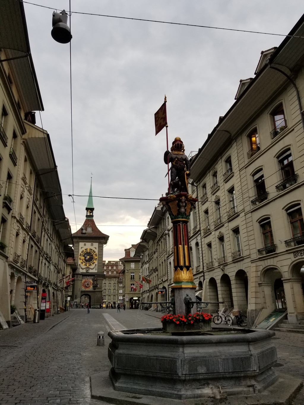 由于时间原因卢塞恩只住了一晚,另一个目的地伯尔尼则是被严重低估了的,作为瑞士首都名气远没有苏黎世、日内瓦响亮,太低调了就被当成此次行程的一个中转站,真的非常遗憾没能有更长的时间在这座低调奢华有内涵的城市里多走走看看。我们到达伯尔尼时已经快晚上七点,找到酒店休息了一下抓紧时间去古城里看一看,当时刚刚下完雨天色已经渐暗。