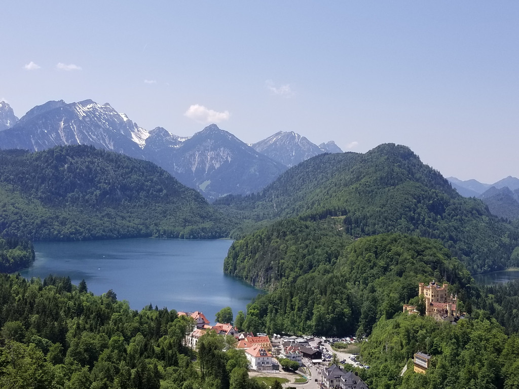 由于当天晚上要抵达下一个目的地国王湖,还想在菲森小城里逛一逛,只得依依不舍地下了山。小城里有很多特色小店可逛,喝着咖啡小乐队在一旁现场演奏,那几天越来越热我和女儿忍不住各买了一条裙子,面料和做工都很好价格还不贵。建议在这里住两晚,附近的湖边落日据说非常迷人,毕竟这里曾经是国王领地不同凡响。我们只能在遗憾中驱车前往200公里外的舍瑙,这样的奔波还是比较消耗体力的,可以说是这一路的风景如画抵消了许多疲惫吧。