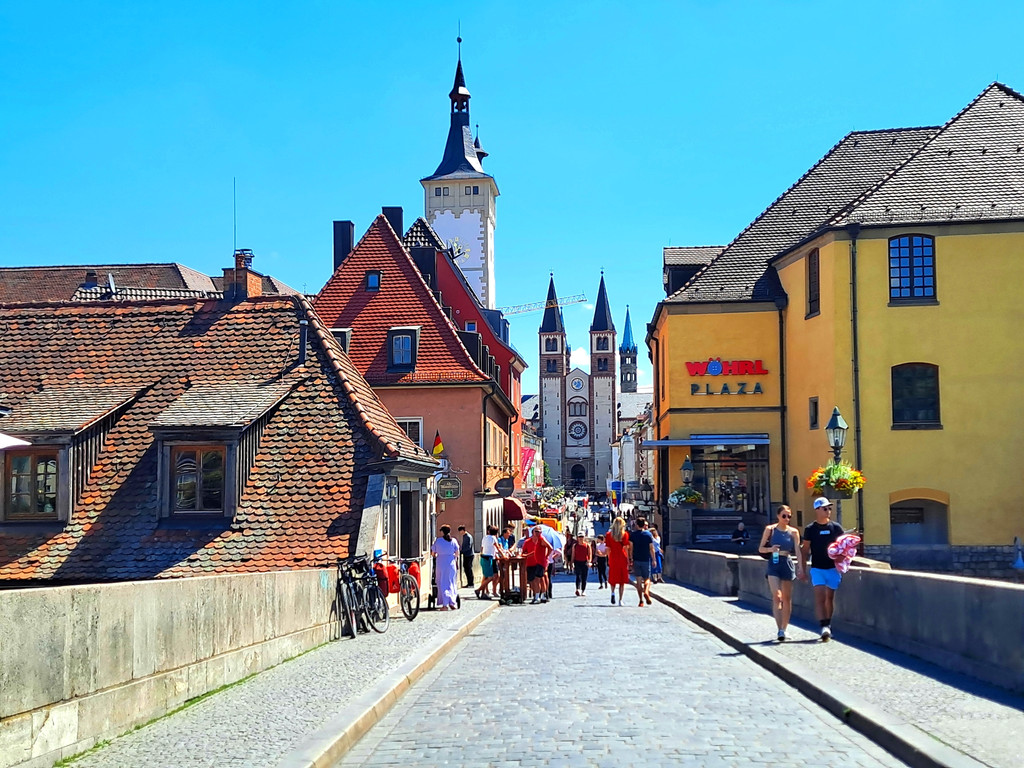 风景如画的古城维尔茨堡坐落在美因河畔。美因桥两侧栏杆有创建维尔茨堡的伟人雕像,城门为1482年建立的谢廉倍尔大门,第二次世界大战中被毁坏,战后重修。联合国教科文组织已将其列为世界文化遗产之一。