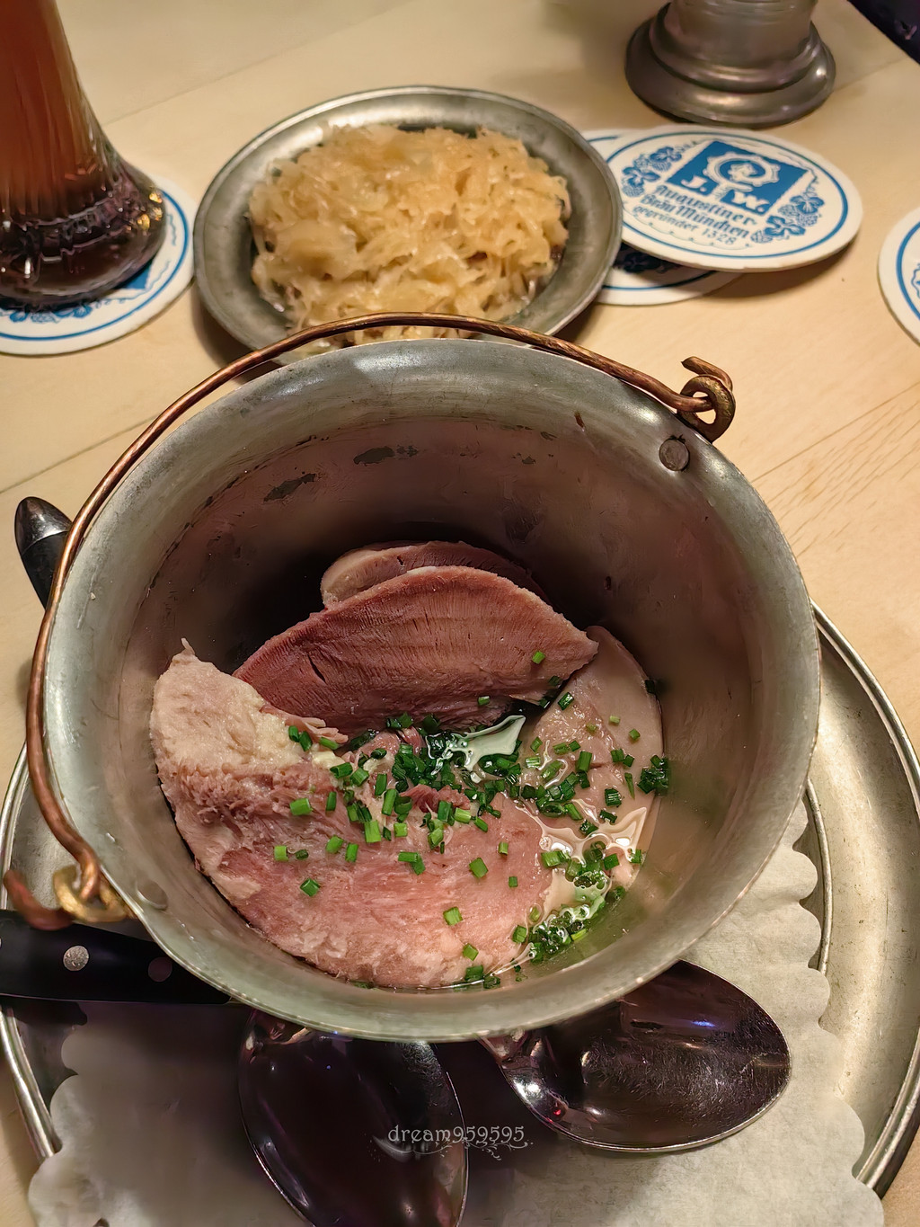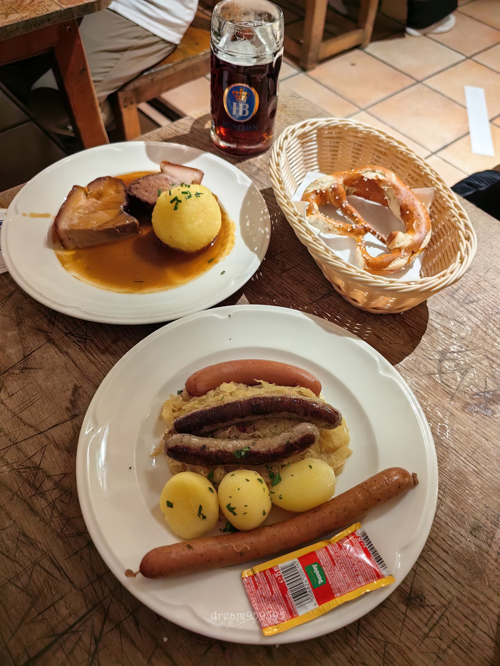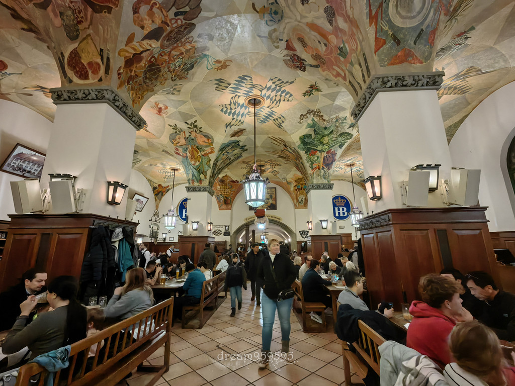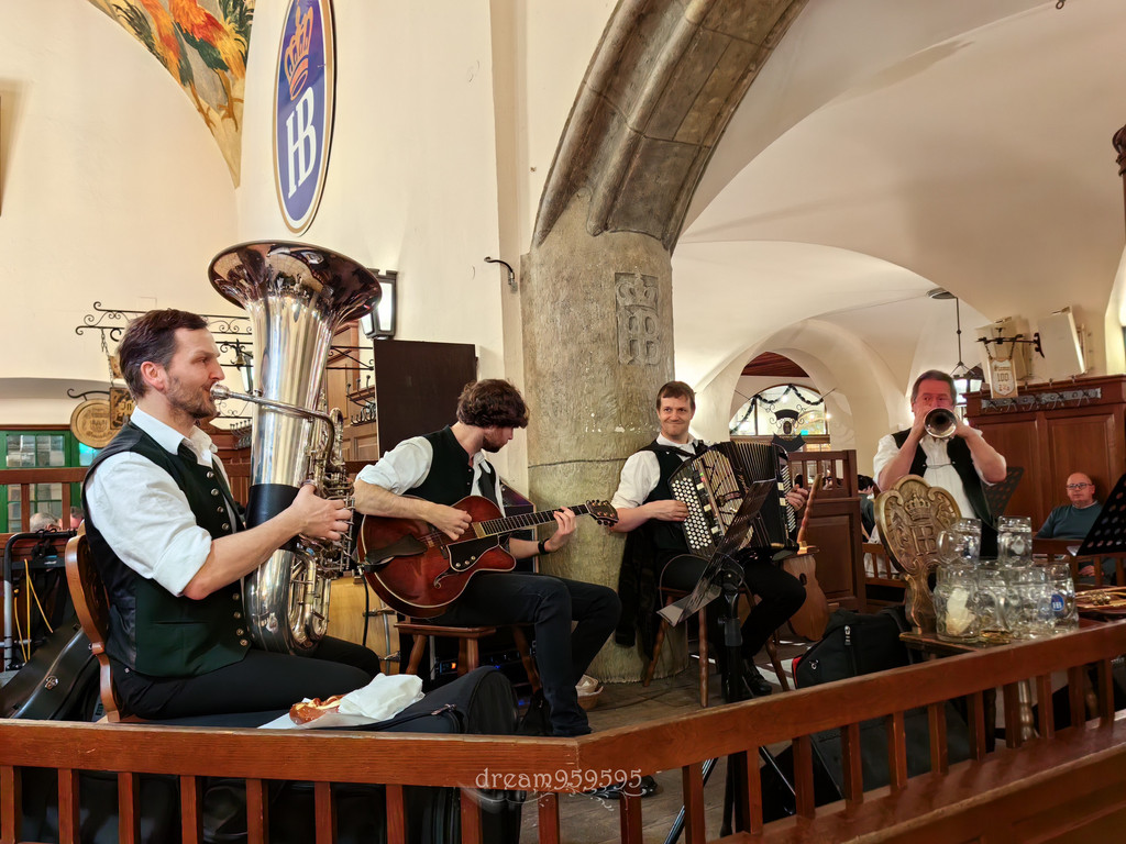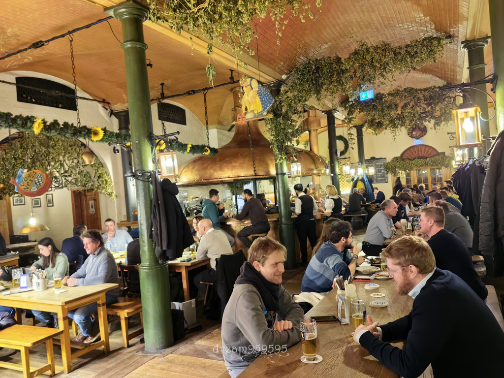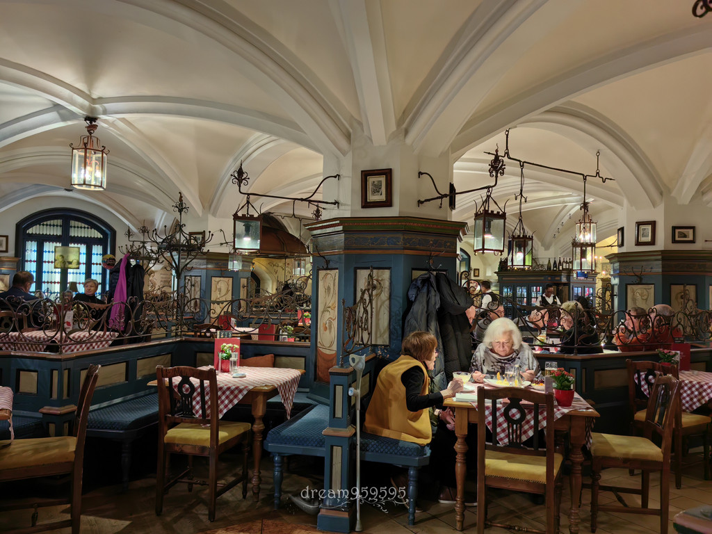 建于1589年,二战前希特勒曾在此发表政变演讲,茜茜公主、歌德和列宁都是常客,这餐厅巨大,里里外外左左右右的,全部坐满,随意找位子拼桌,氛围非常high,有民族音乐表演。
