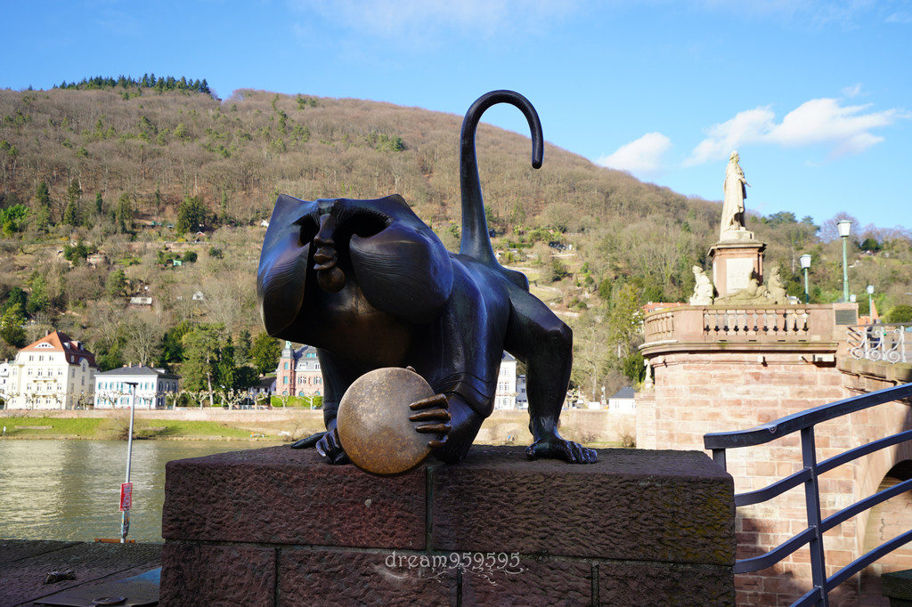 老桥的一侧有铜猴雕像,据说摸过猴子的右手食指会再回到海德堡,摸摸猴子左手铜镜会带来好运,摸摸老鼠是祝福自己多子多孙。