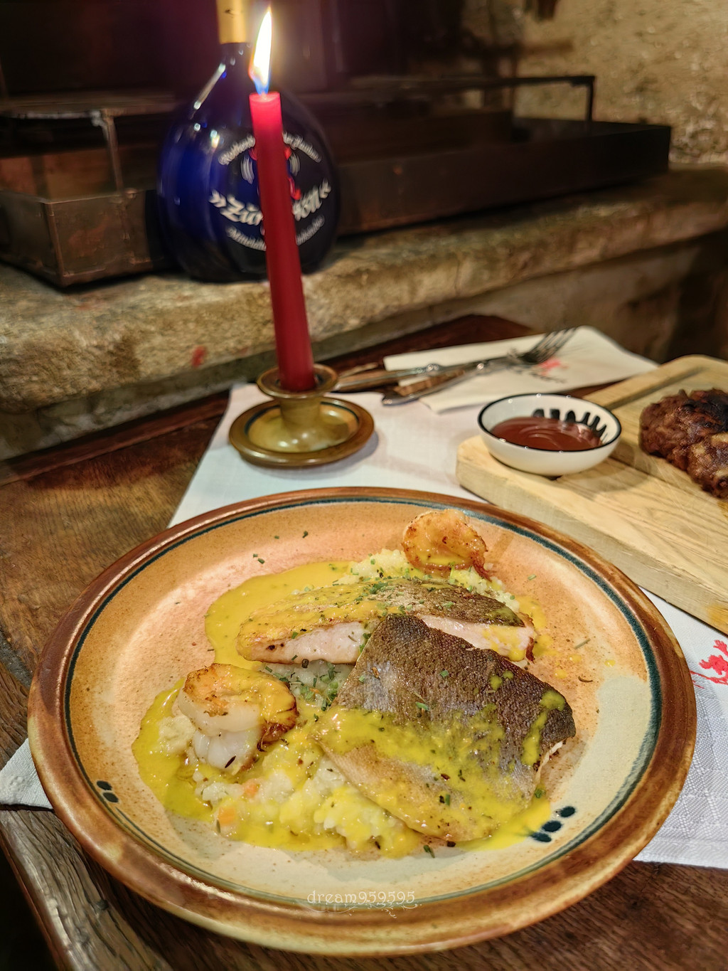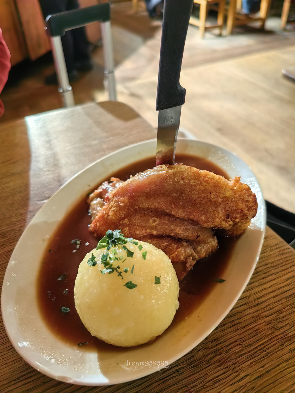 主菜搭配的土豆球是巴伐利亚的特色,口感有点像面粉加土豆,有微弹性和紧实感,不如纯土豆那么绵密粉糯,很奇怪的口感,吃不惯。