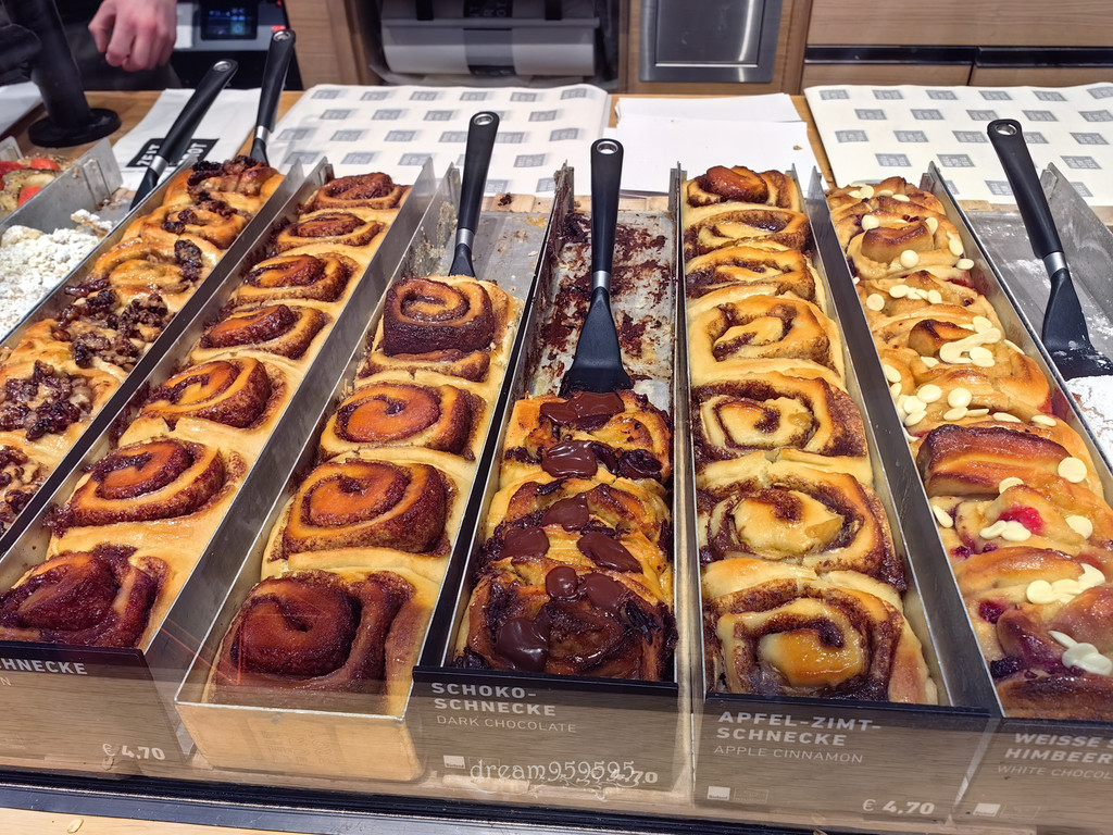 柏林网红店,各种肉桂卷是特色,点了苹果肉桂卷和胡萝卜蛋糕,都不错,但是不惊艳,咖啡一般。