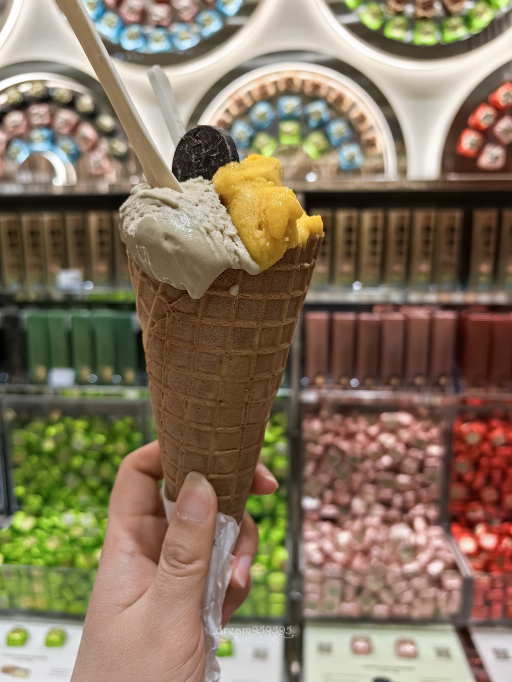 冰激凌,四球,啤酒、开心果、芒果、75%黑巧。啤酒味应该是这里的特色吧。