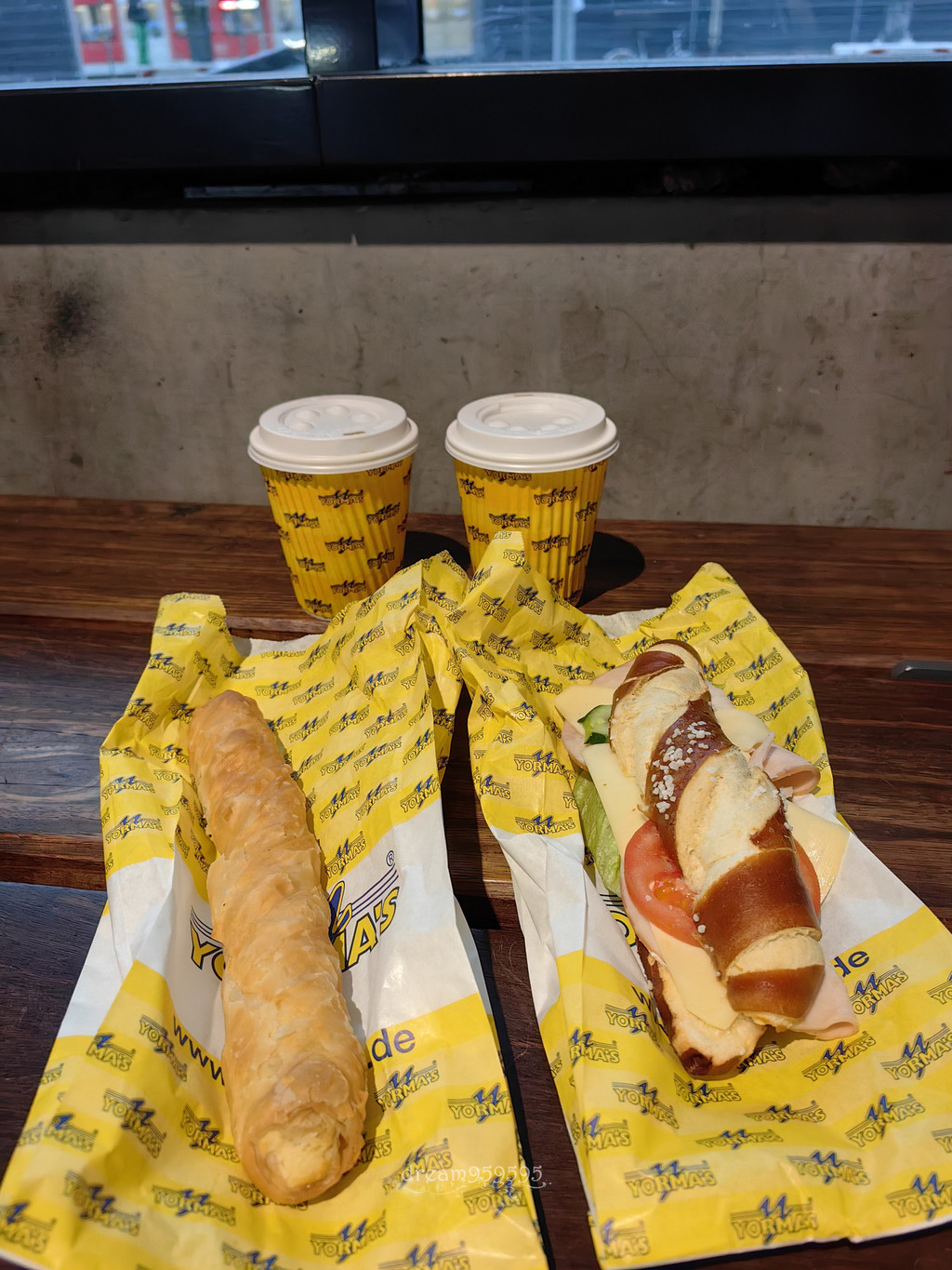 试了扭结三明治和芝士火腿扭结,扭结三明治好吃的。