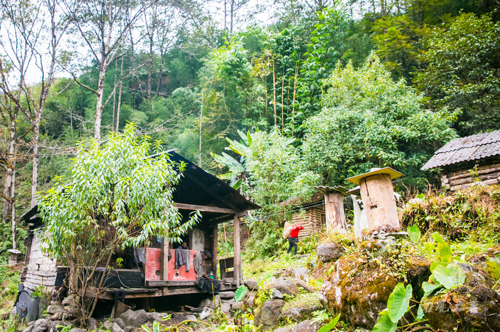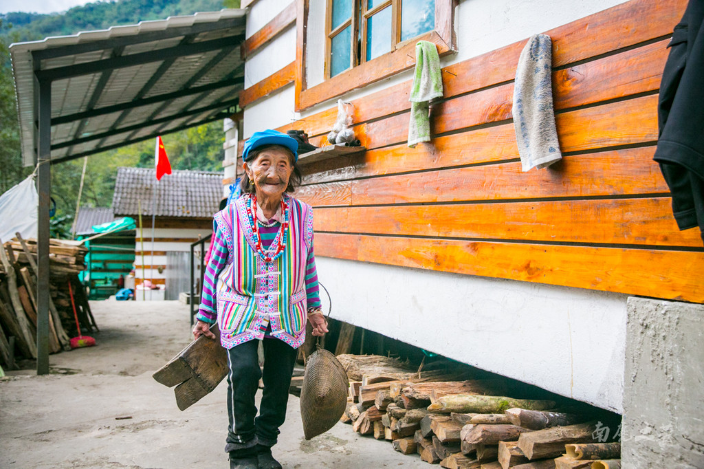 沿着独龙江,分上游和下游两段,我们通过会汉语的龙元村年轻人,找到了一位年纪最大的纹面老人,叫开丽拿松,据说有100岁了,但他已经忘记了自己的年龄,她现在每天都要来这座她住了几十年的老房子呆一会。