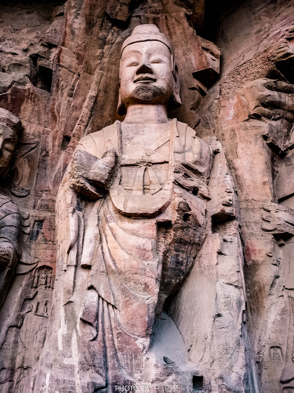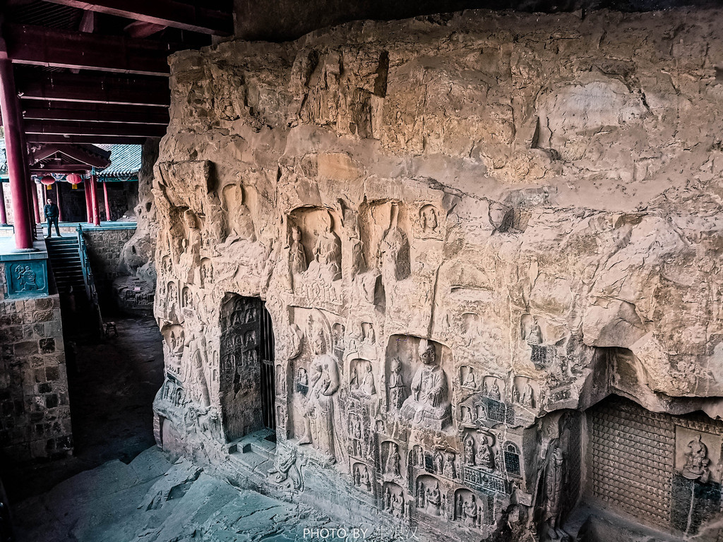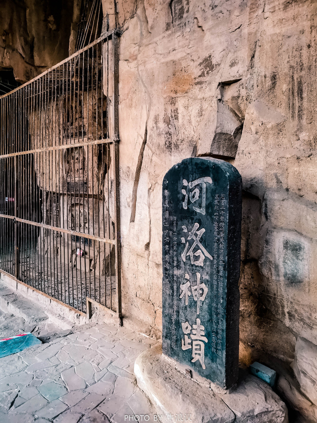转过大雄宝殿,隐隐地就感觉到远处不高的山壁上,有种神圣庄严的力量吸引着喜爱人文历史的我,离它越近越感到惊喜。望着山壁上精工雕刻的庄严佛像,再翻看着手中的宣传画册,这才猛然发觉自己差点错过了一处大有来头的宝藏地:这里曾是唐玄奘的出家地;这里还有国内的孤品“帝后礼佛图”!不觉间眼的余光落到一块“河洛神迹”的石碑上,果然堪称神迹。