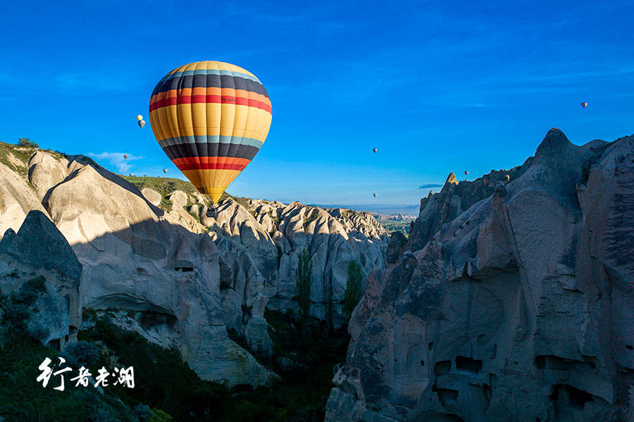 摇曳的热气球,像飘在空中的花。掠过“星球大战”月球表面般的石笋,诱惑着人们从高空俯瞰格雷梅。当热气球飞过厄赫拉热峡谷,“仙女烟囱”上的洞穴城堡赫然就在右前方。