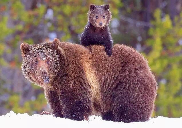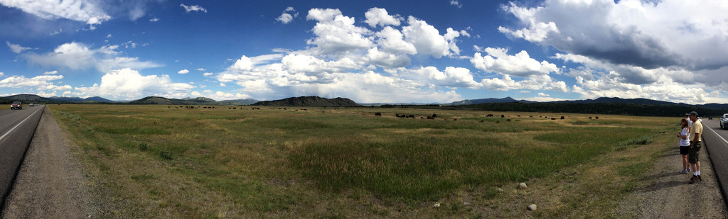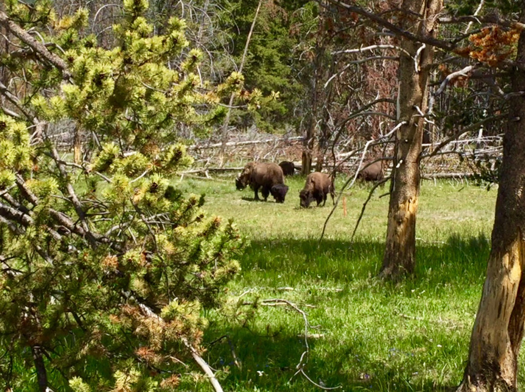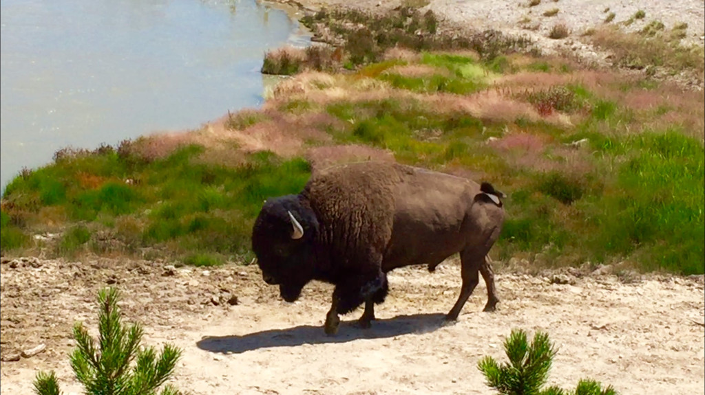 还有一次看到很多车停下来,一问说是棕熊一家刚过了马路,没能近距离目睹到胖墩墩棕熊妈妈和萌萌的熊宝宝,成了这次黄石行的唯一遗憾。
