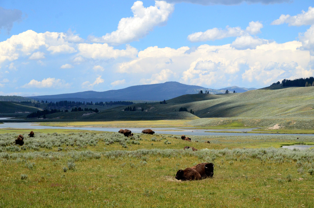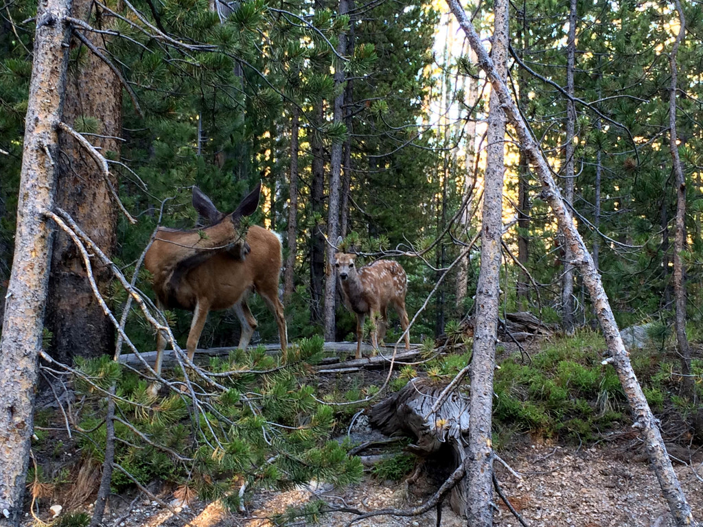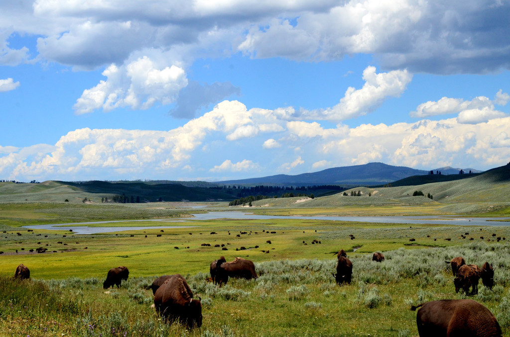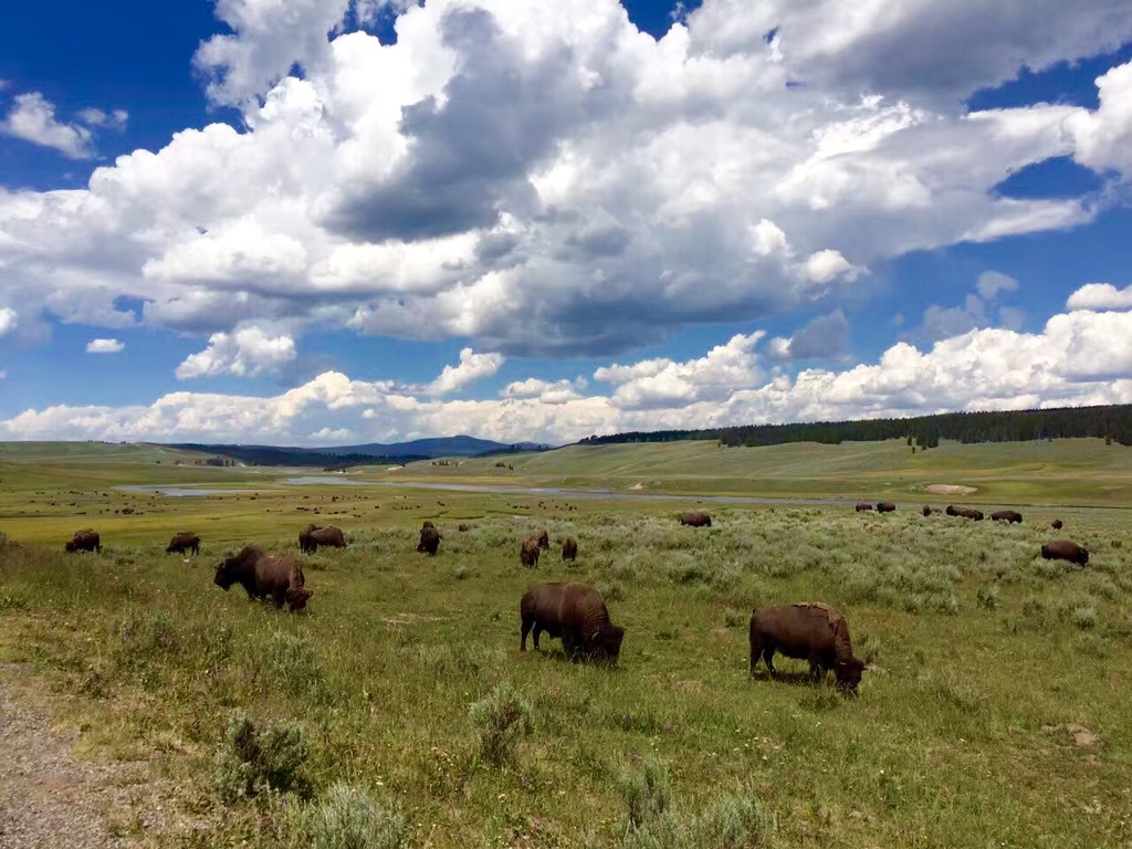看野生动物,是小孩来黄石的主要目的,随处可见的北美野牛群,野鸭,水鸟,老鹰,野兔,地鼠。傍晚或是清晨,是我们观察野鹿和棕熊的最佳时间。这里的动物都不怕人,不会因为见到游客躲避奔跑,仿佛他们天然就是这里的主人,而我们只是过客。